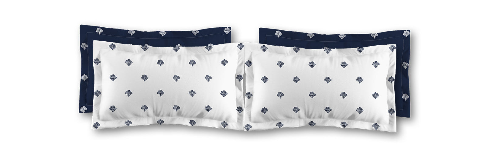 White Microfiber Pillow Sham with Flange, Navy Blue Hand-painted Swizzle Motif Print, White Reverse Side | MFSF-1271-171
