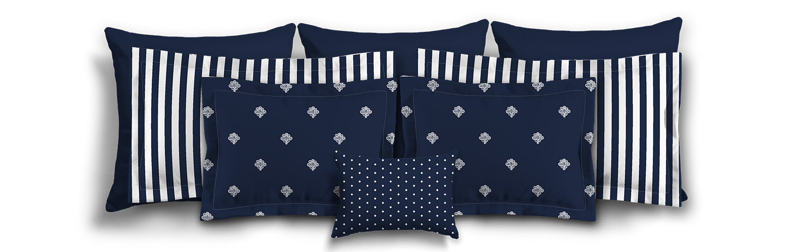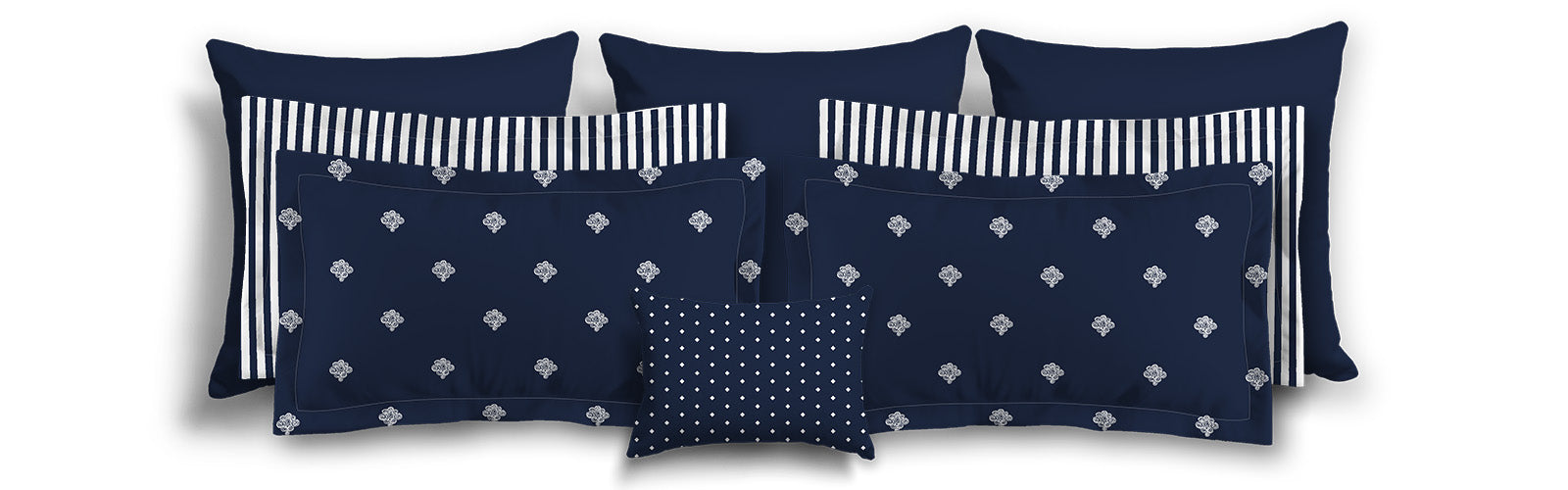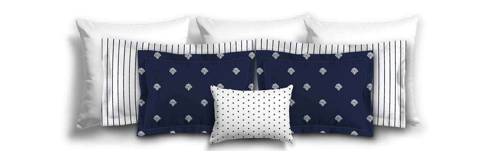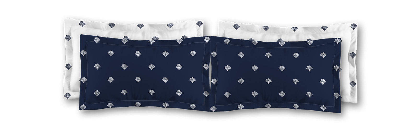 Navy Blue Microfiber Pillow Sham with Flange, White Hand-painted Swizzle Motif Print, White Reverse Side | MFSF-1271-172