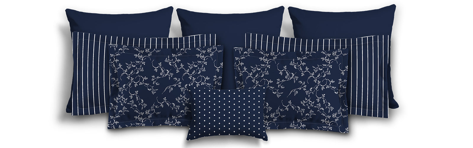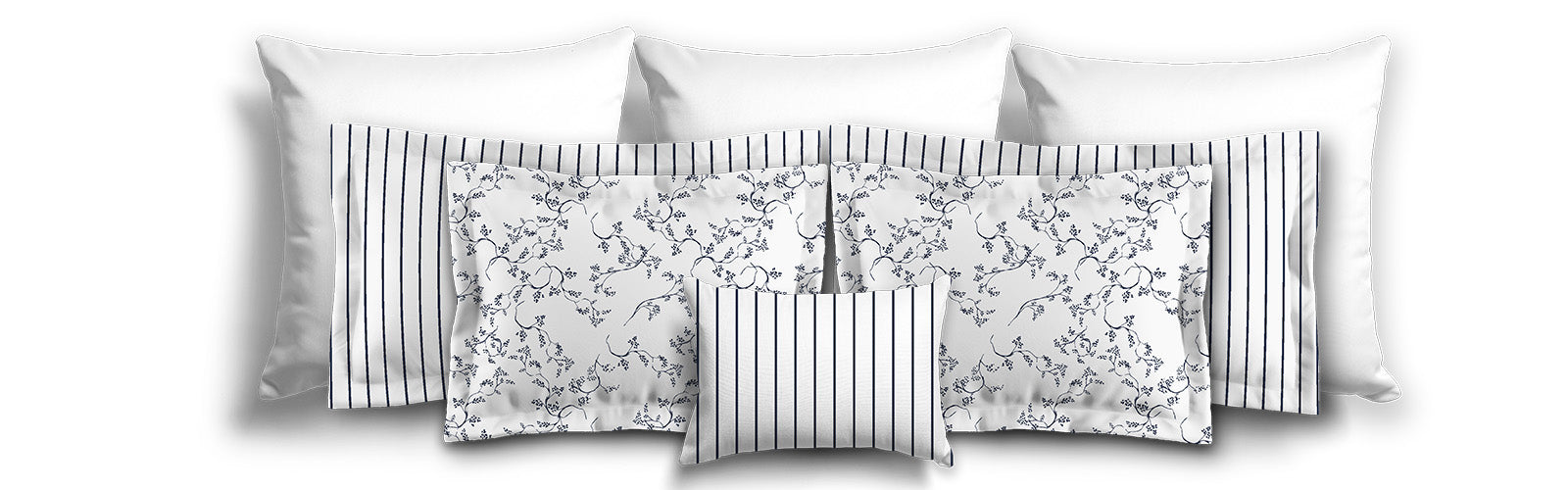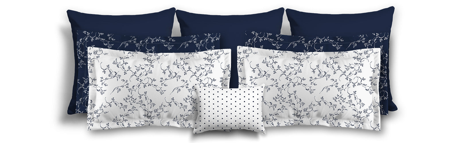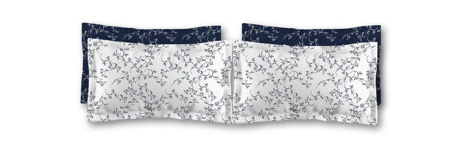 Navy Blue Microfiber Pillow Sham with Flange, White Hand-painted Vine Print, White Reverse Side | MFSF-1271-182