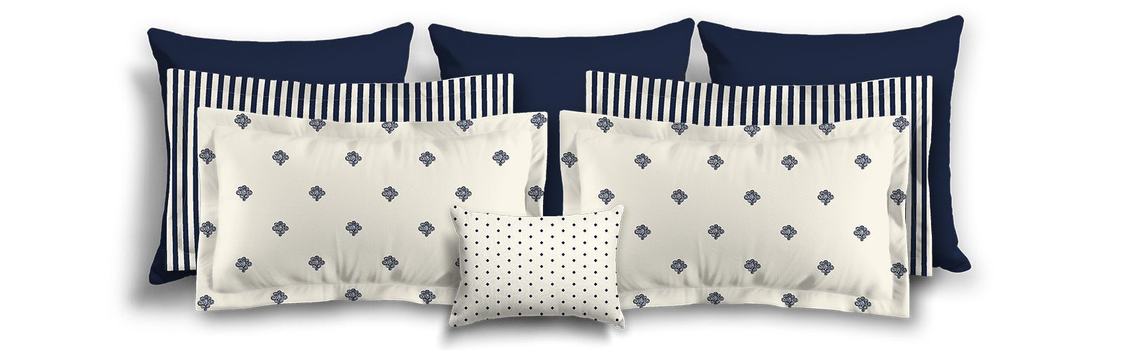 Pale Cream Microfiber Sham with Flange, Navy Blue Stripes on Front, White Reverse Side | MFSF-1273-151