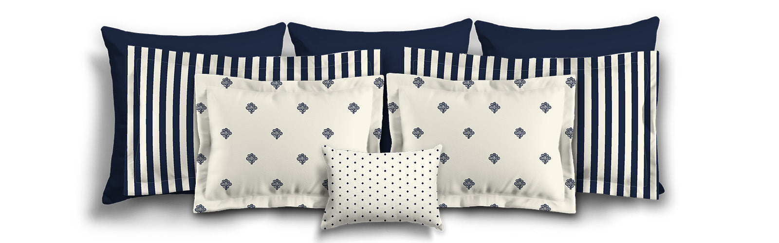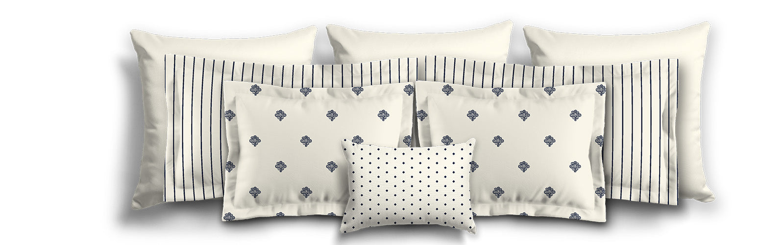 Pale Cream Microfiber Sham with Flange, Navy Blue Bars on Front, White Reverse Side | MFSF-1273-051