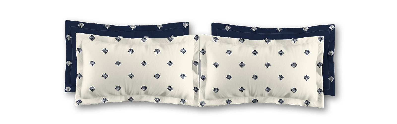 Pale Cream Microfiber Pillow Sham with Flange, Navy Blue Hand-painted Swizzle Motif Print, White Reverse Side | MFSF-1273-171