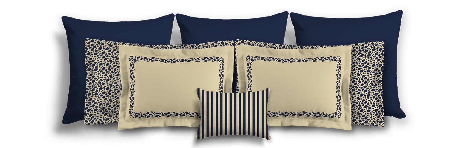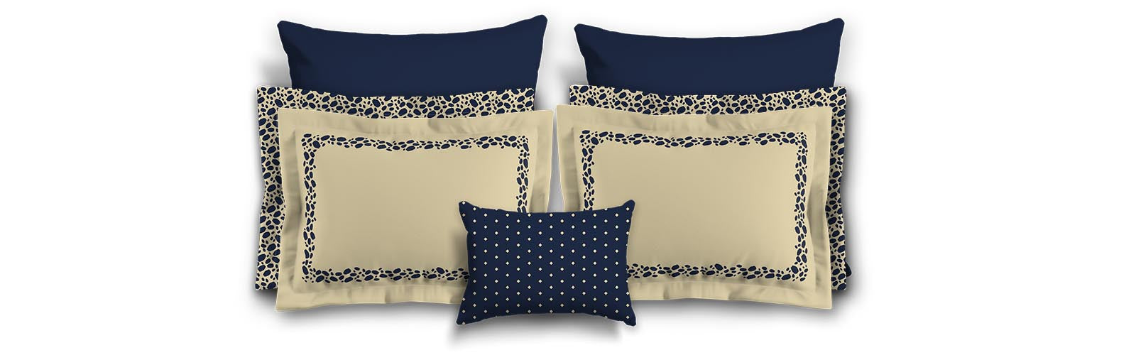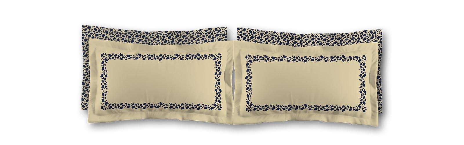 Tan Microfiber Pillow Sham with Flange, Navy Blue Hand-painted Dab Motif Print, Classic Border, Tan Reverse Side | MFSF-1274-091