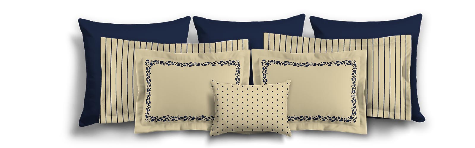 Navy Blue Microfiber Sham with Flange, Tan Stripes on Front, Tan Reverse Side | MFSF-1274-152
