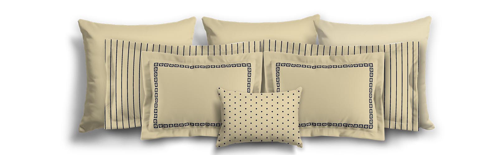 Tan Microfiber Sham with Flange, Navy Blue Bars on Front, Tan Reverse Side | MFSF-1274-051