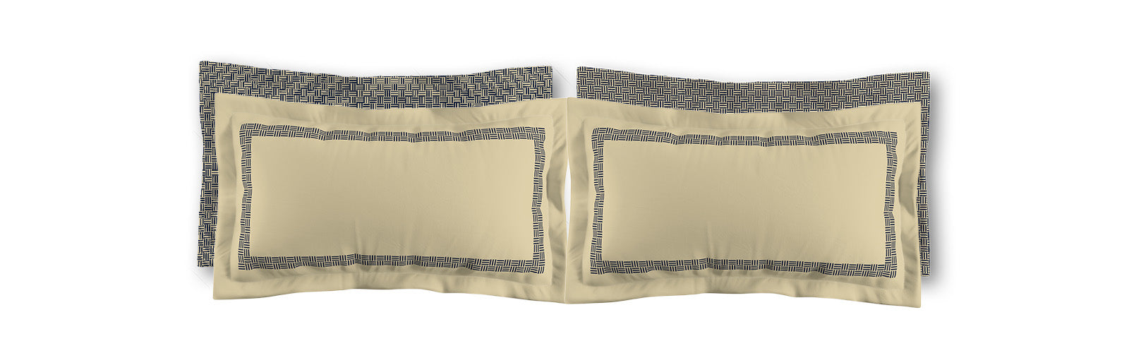 Tan Microfiber Pillow Sham with Flange, Navy Blue Double Weave Motif Print, Classic Border, Tan Reverse Side | MFSF-1274-143