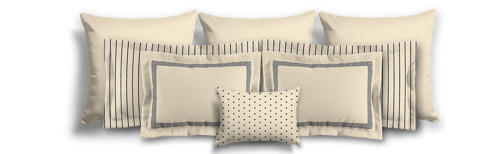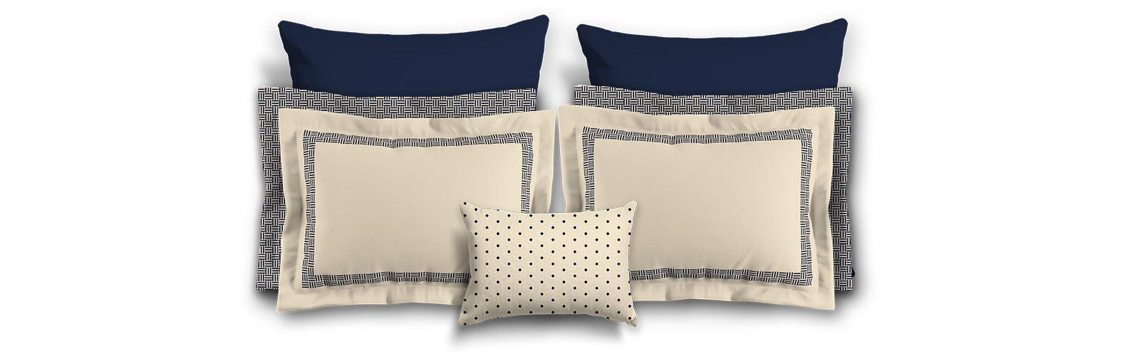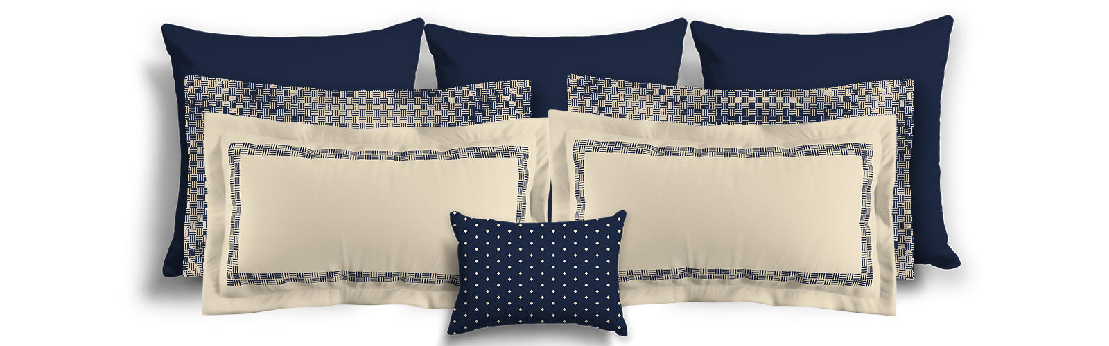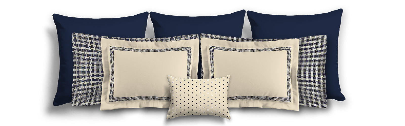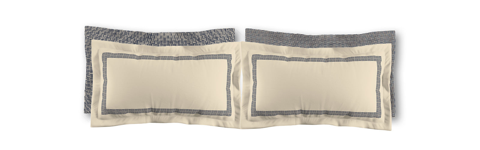 Beige Microfiber Pillow Sham with Flange, Navy Blue Double Weave Motif Print, White Reverse Side | MFSF-1275-144