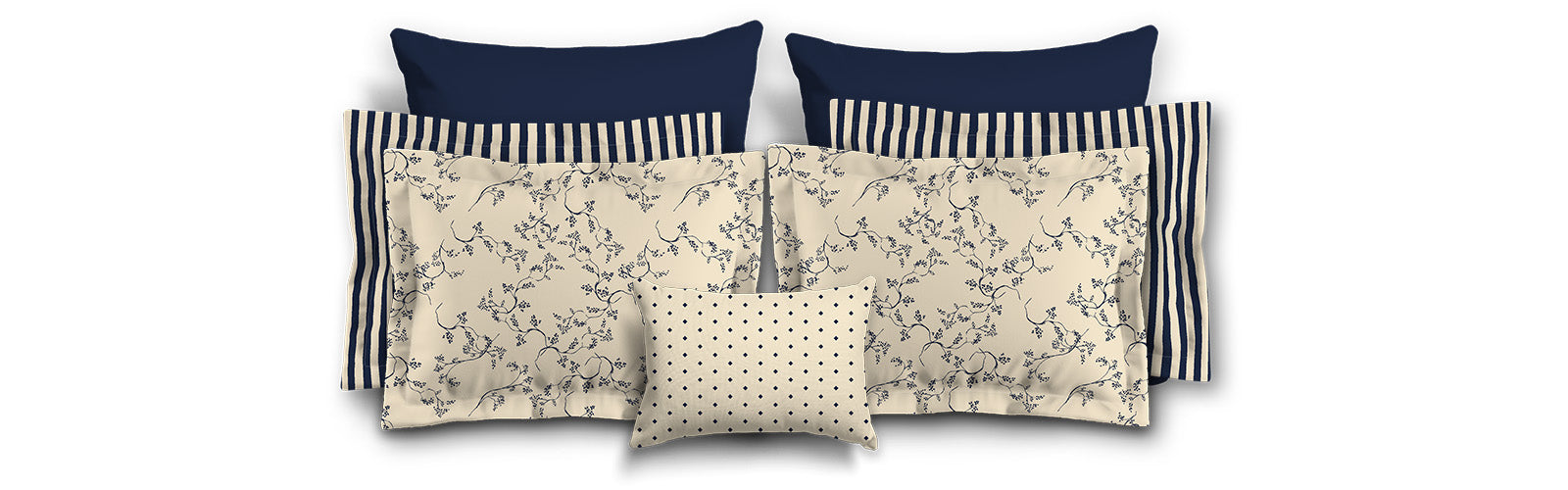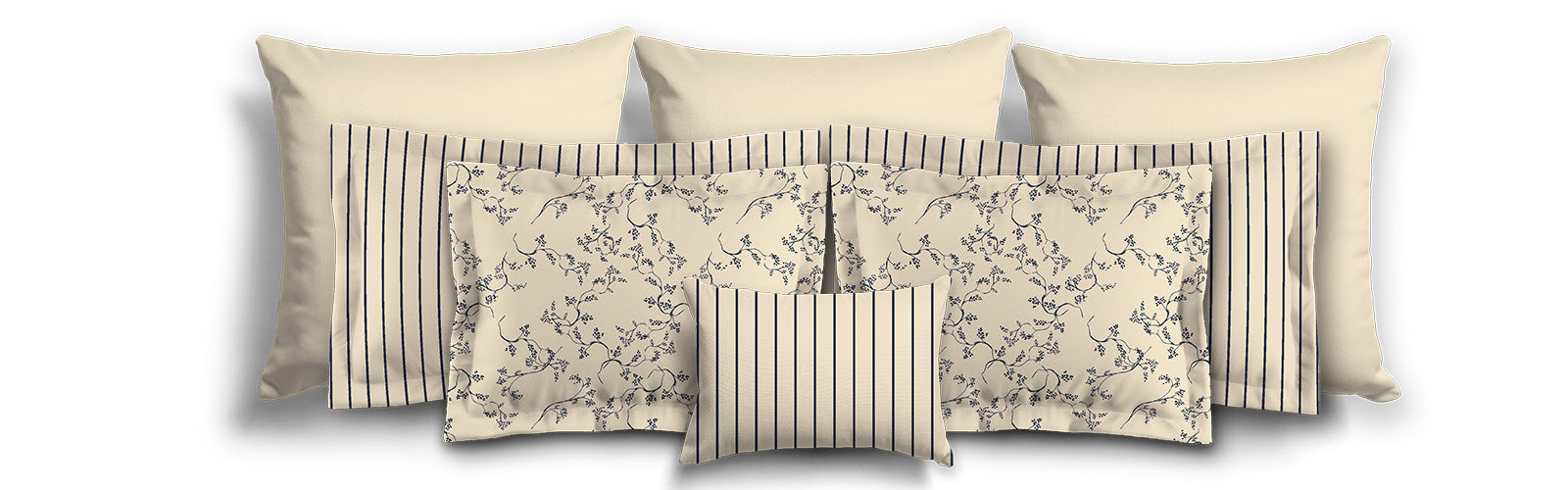 Beige Microfiber Sham with Flange, Navy Blue Stripes on Front, White Reverse Side | MFSF-1275-151