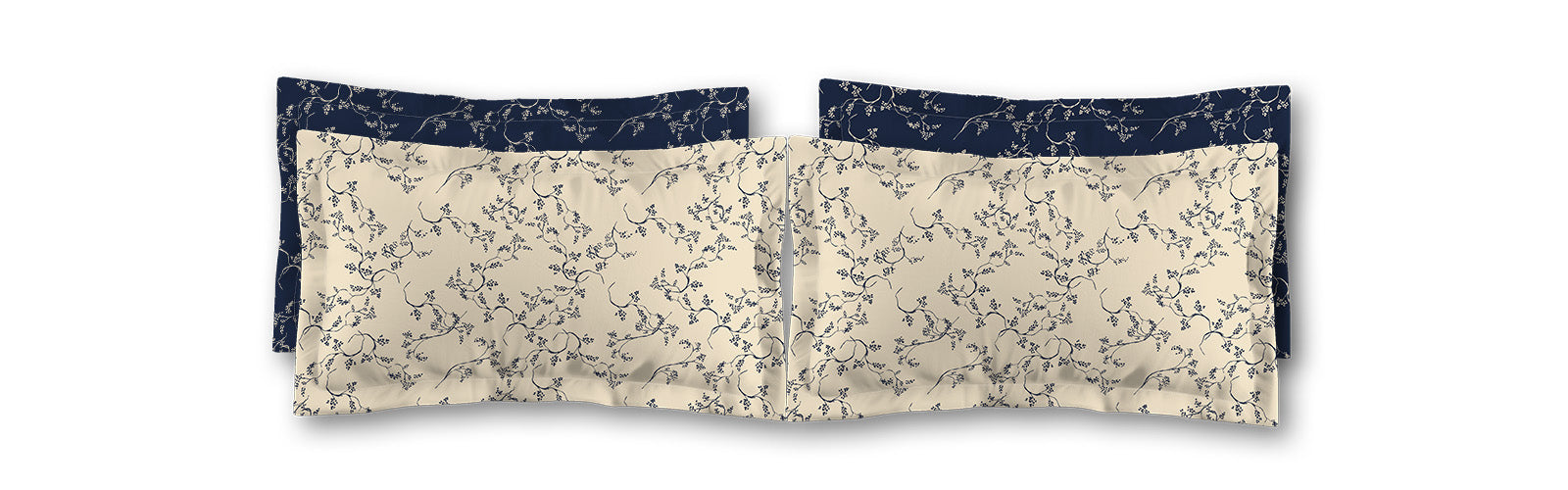 Beige Microfiber Pillow Sham with Flange, Navy Blue Hand-painted Vine Print, White Reverse Side | MFSF-1275-181