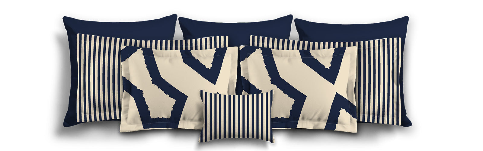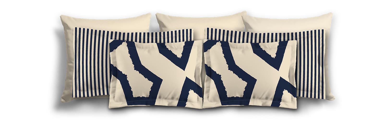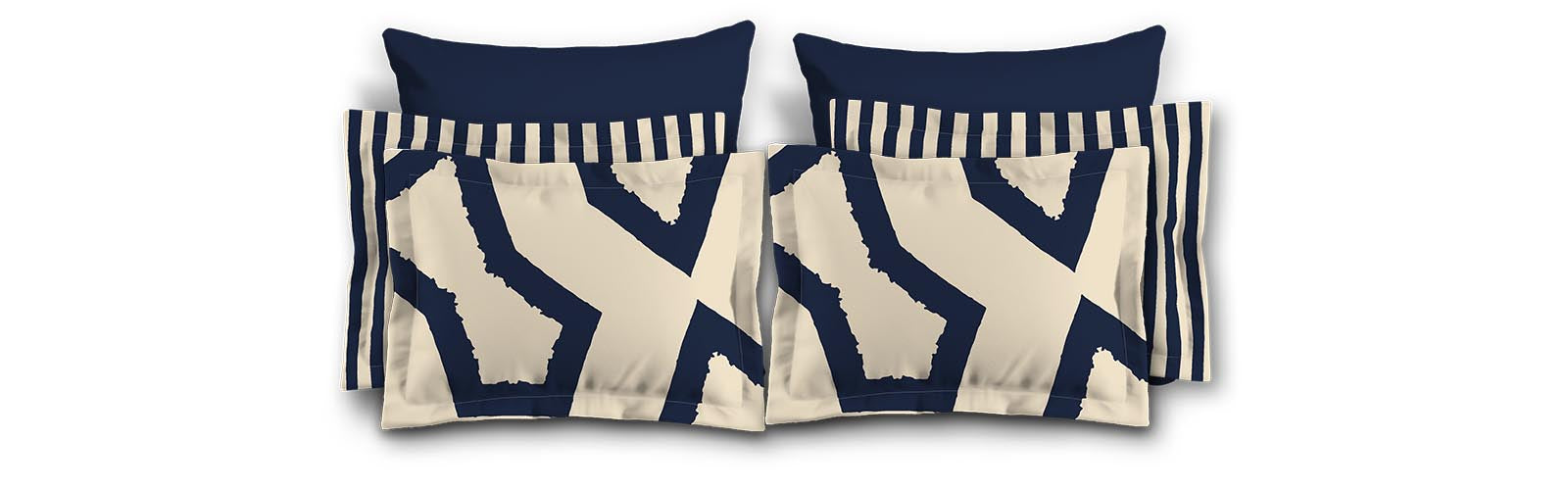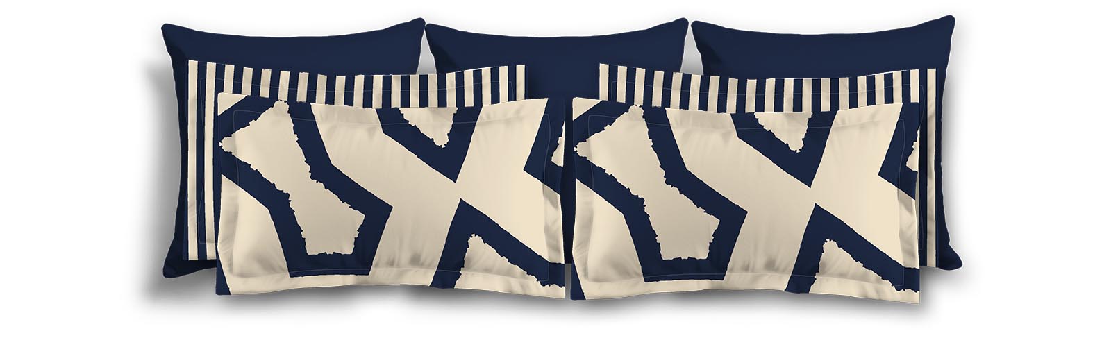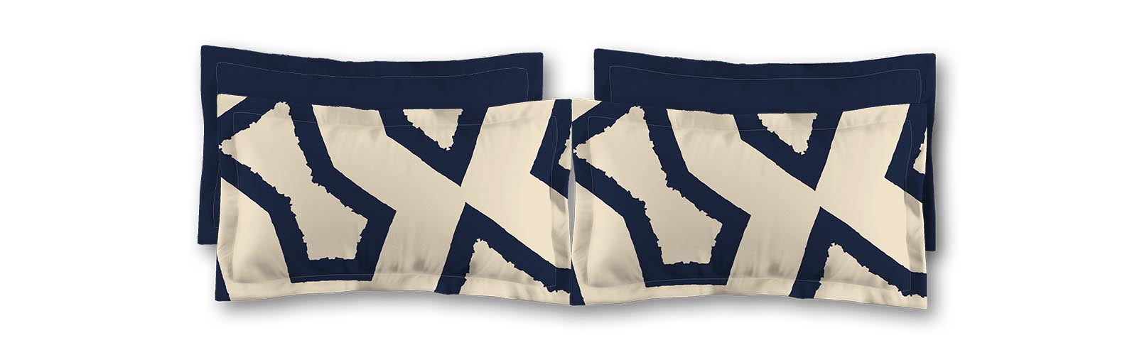 Beige Microfiber Sham with Flange, Bold Navy Blue Graphic on Front, White Reverse Side | MFSF-1275-391