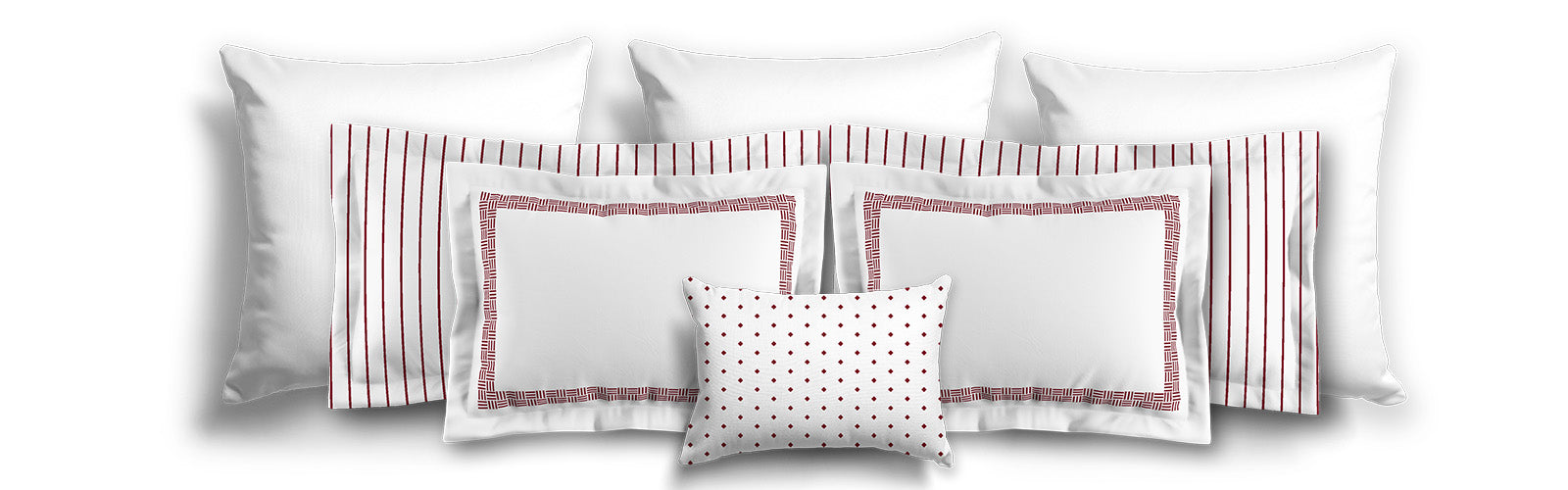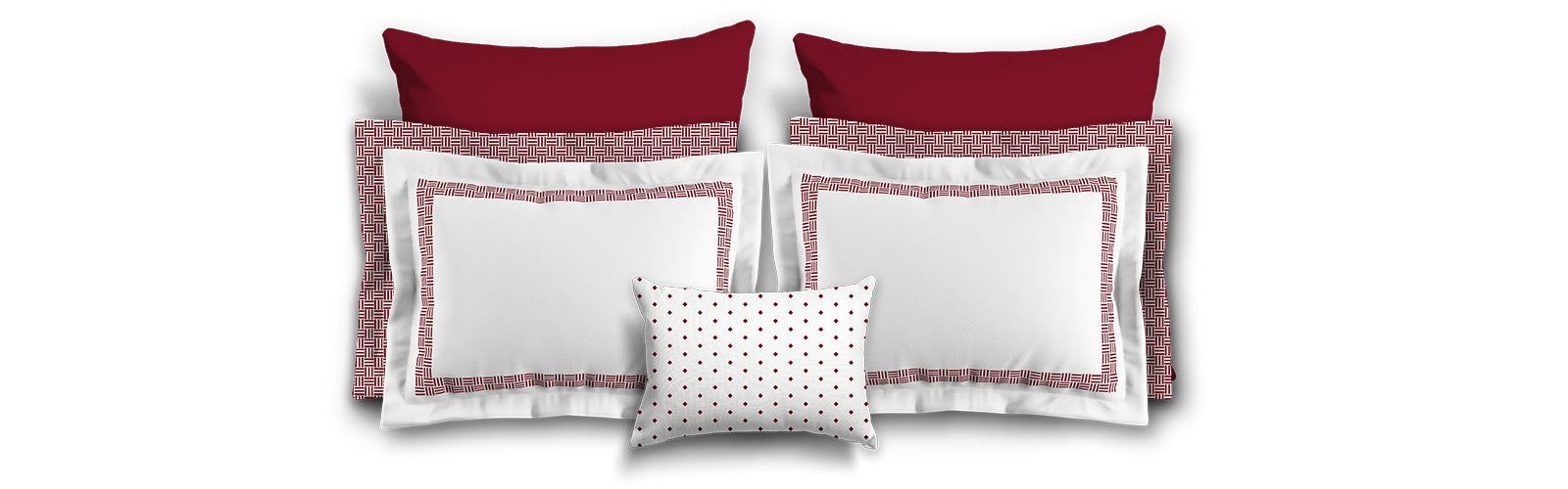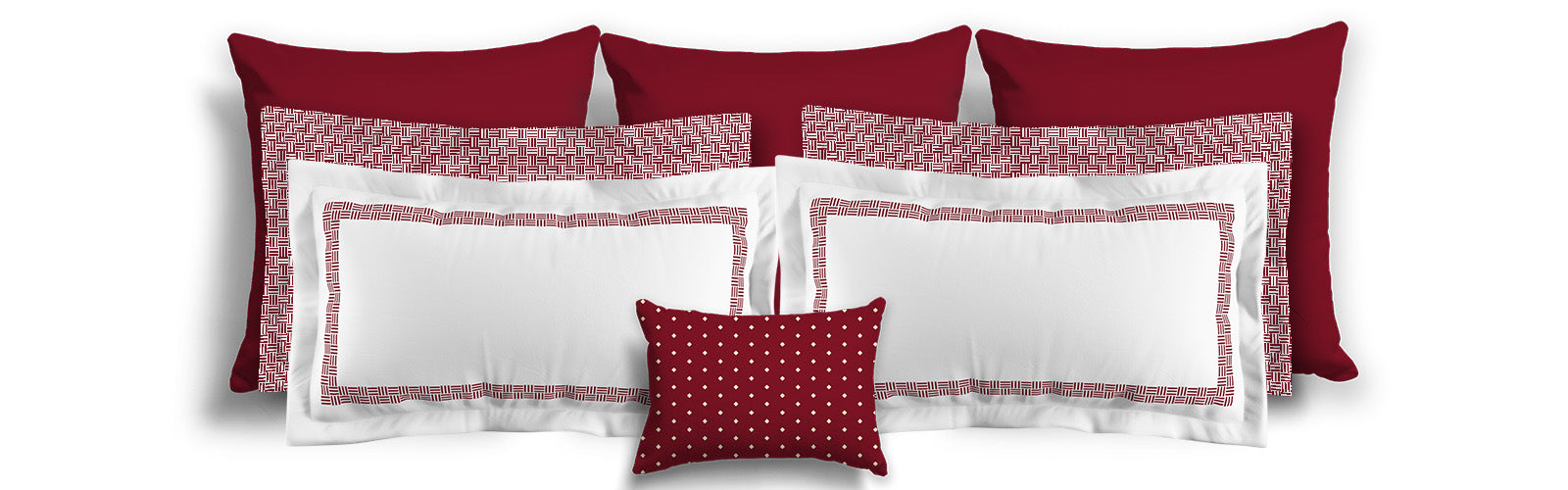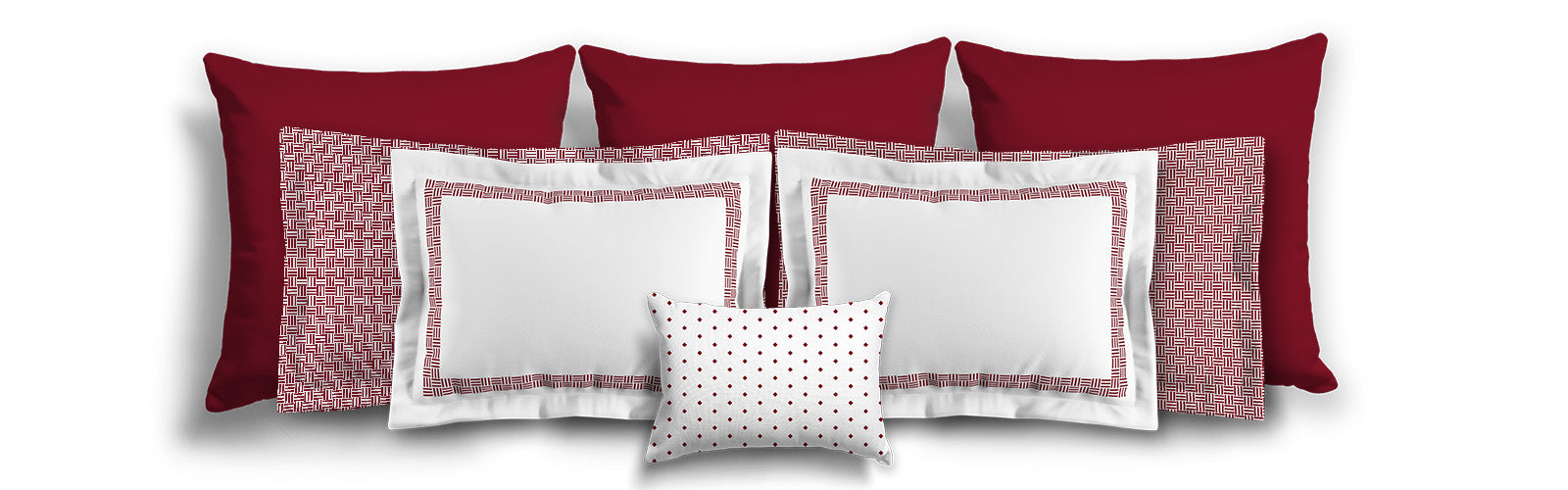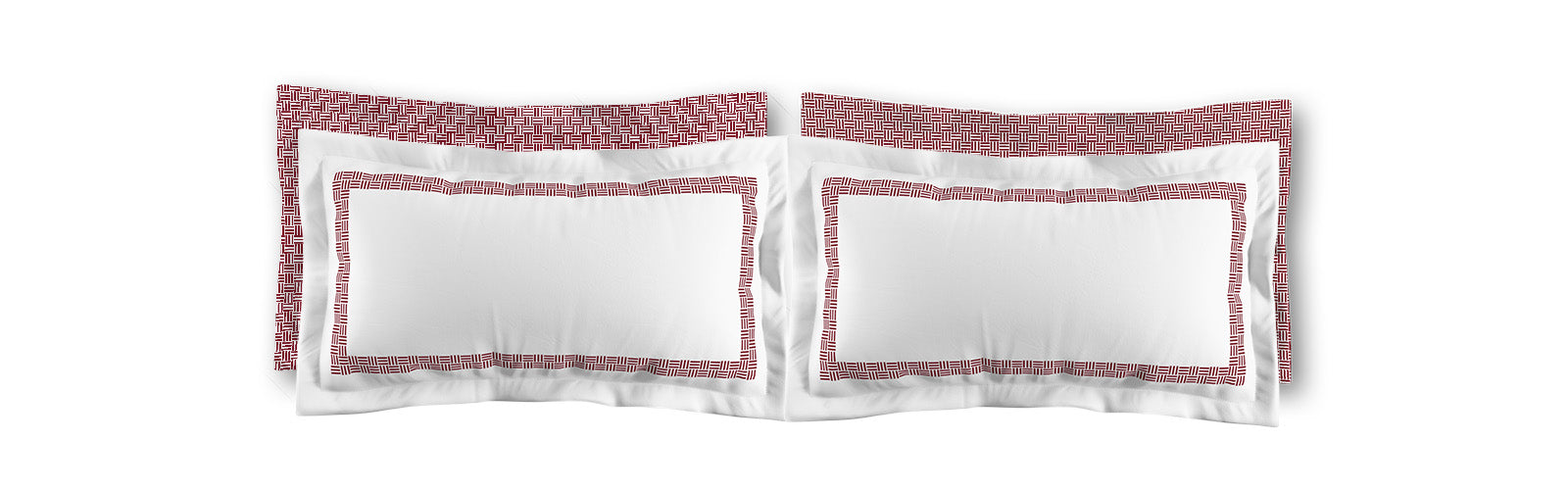 White Microfiber Pillow Sham with Flange, Burgundy Red Double Weave Motif Print, White Reverse Side | MFSF-1281-144