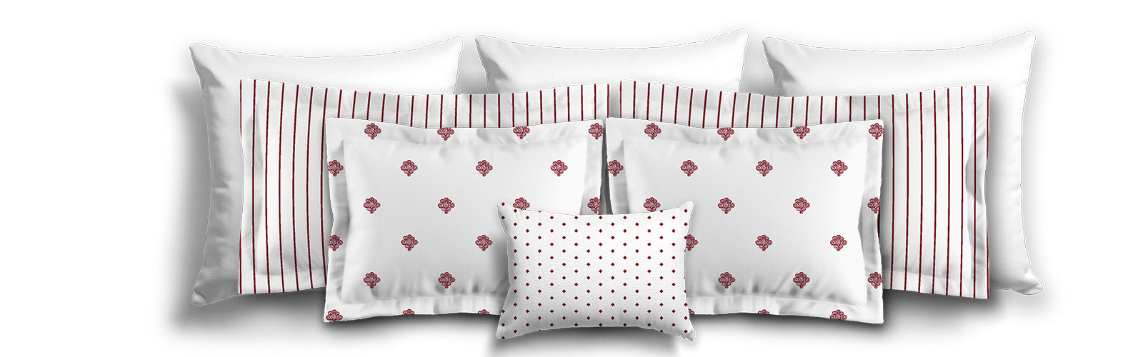 White Microfiber Sham with Flange, Burgundy Red Bars on Front, White Reverse Side | MFSF-1281-051