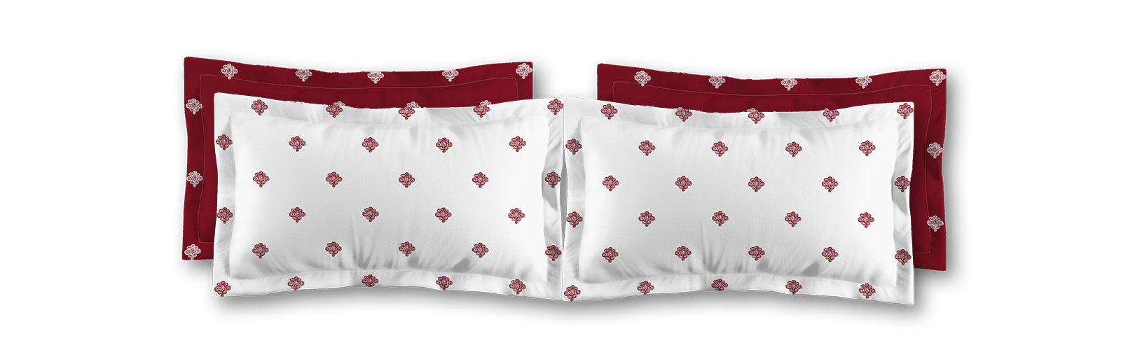 White Microfiber Pillow Sham with Flange, Burgundy Red Hand-painted Swizzle Motif Print, White Reverse Side | MFSF-1281-171