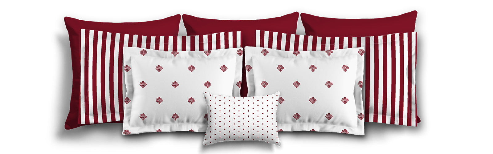 Burgundy Red Microfiber Sham with Flange, White Stripes on Front, White Reverse Side | MFSF-1281-152