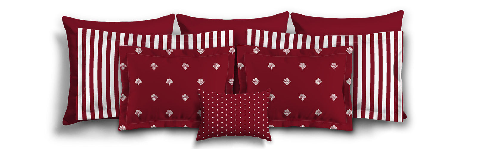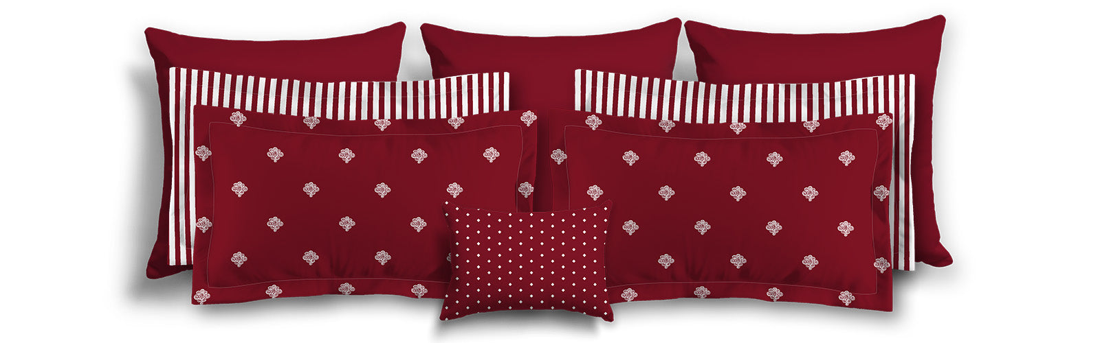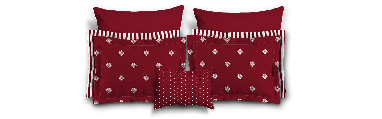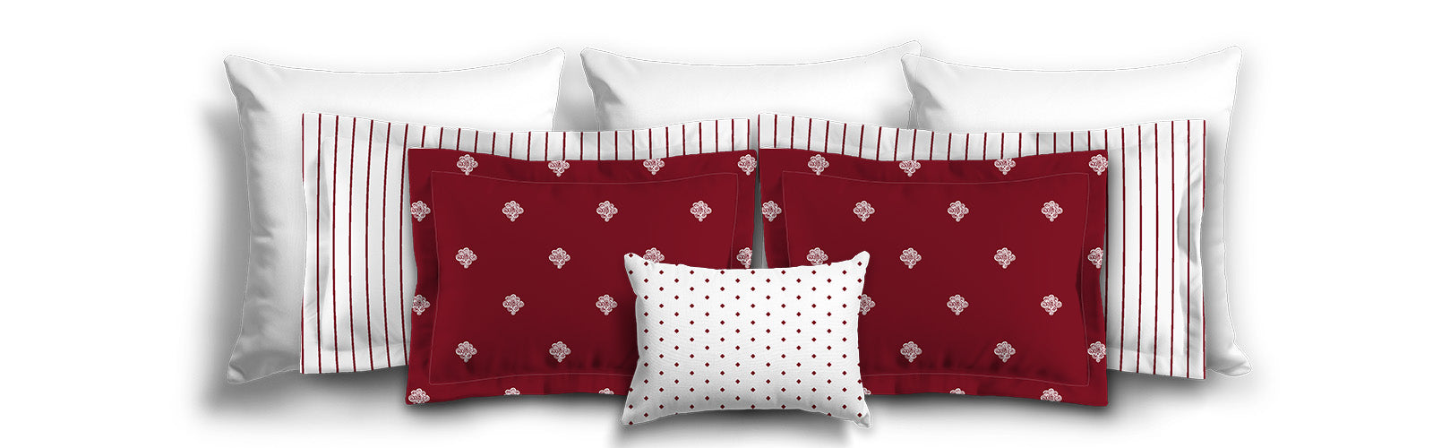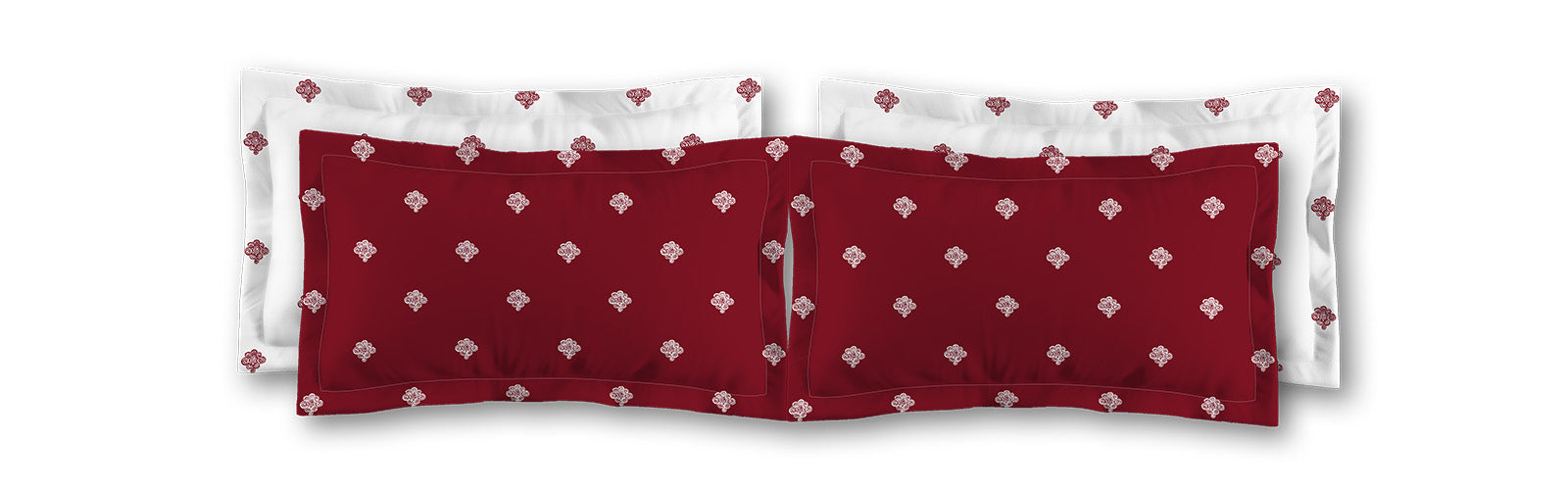 Burgundy Red Microfiber Pillow Sham with Flange, White Hand-painted Swizzle Motif Print, White Reverse Side | MFSF-1281-172