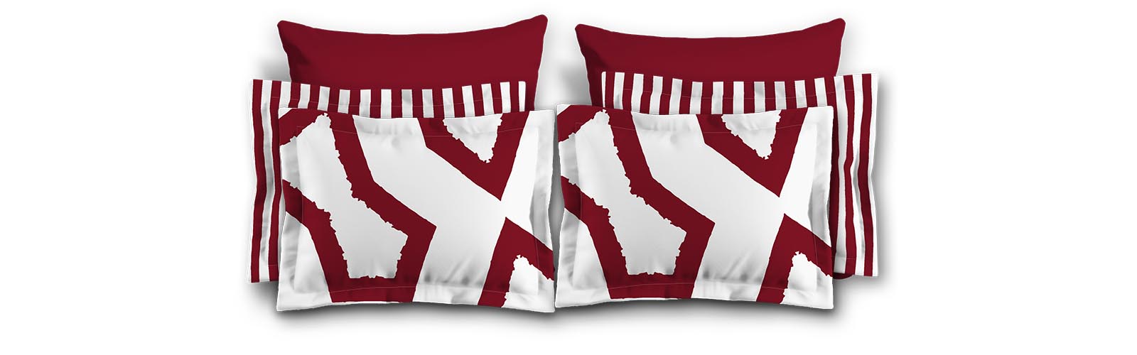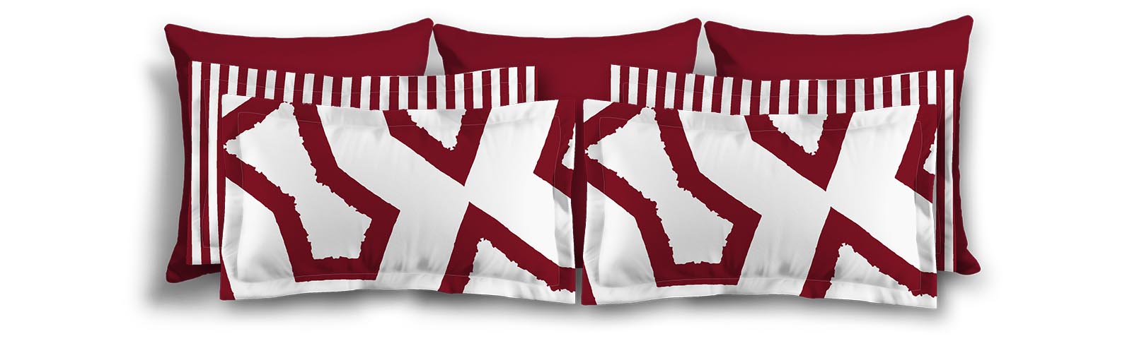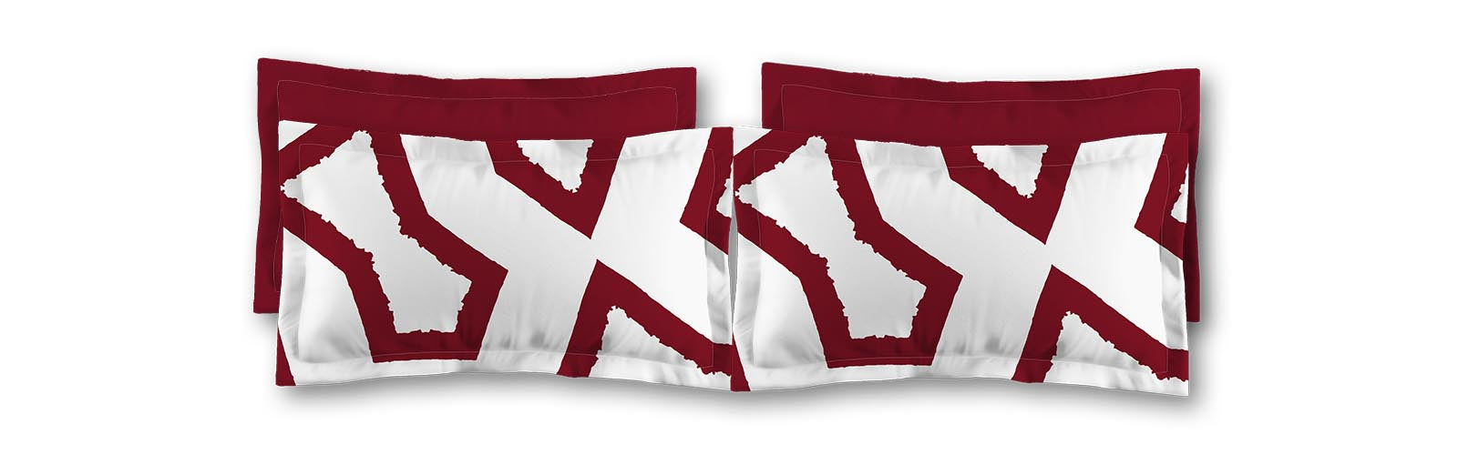 White Microfiber Sham with Flange, Bold Burgundy Red Graphic on Front, White Reverse Side | MFSF-1281-391