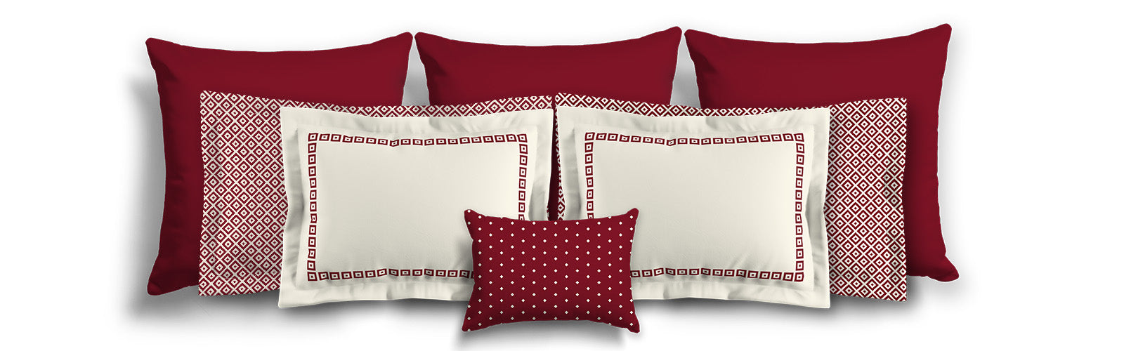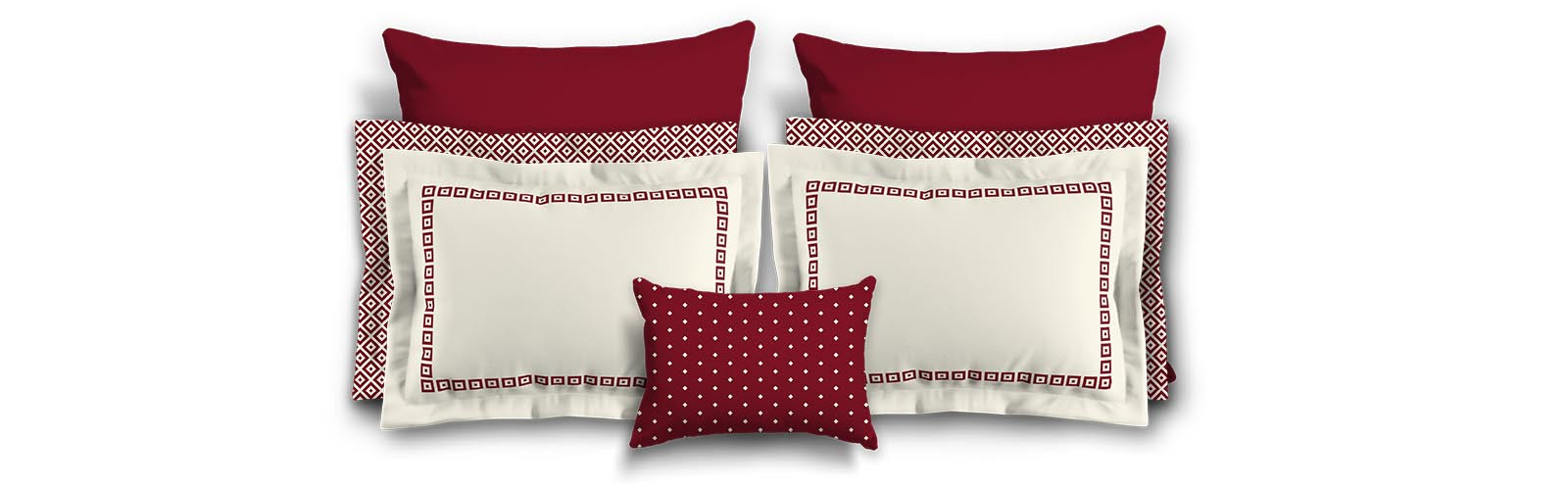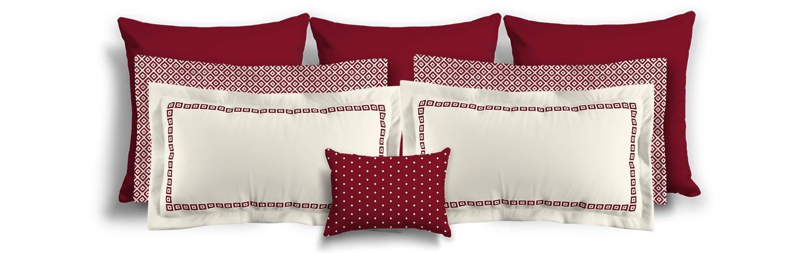 Pale Cream Microfiber Pillow Sham with Flange, Burgundy Red Repeating Square Motif Print, White Reverse Side | MFSF-1283-122