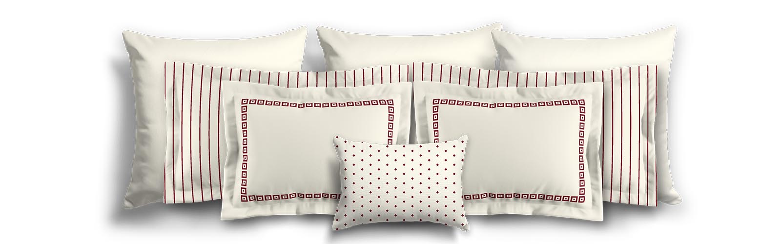 Pale Cream Microfiber Sham with Flange, Burgundy Red Bars on Front, White Reverse Side | MFSF-1283-051