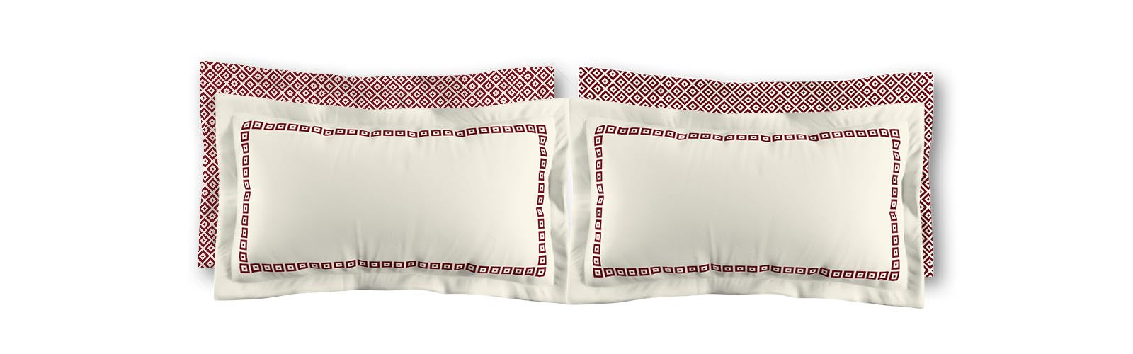 Pale Cream Microfiber Pillow Sham with Flange, Burgundy Red Repeating Square Motif Print, Classic Border, White Reverse Side | MFSF-1283-121
