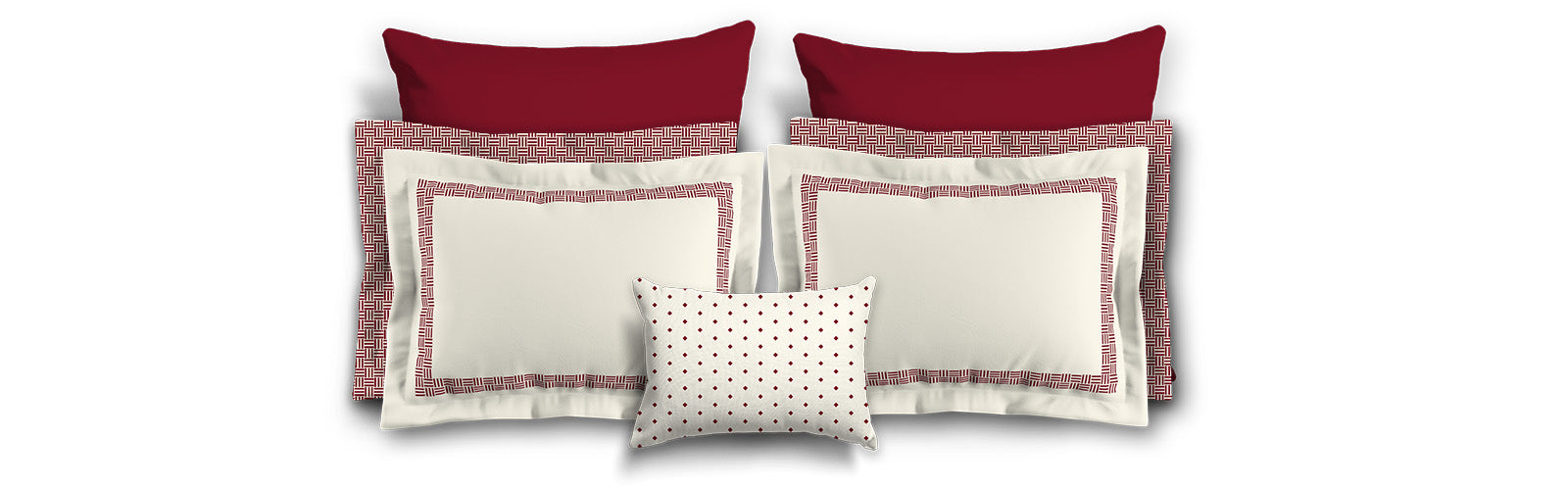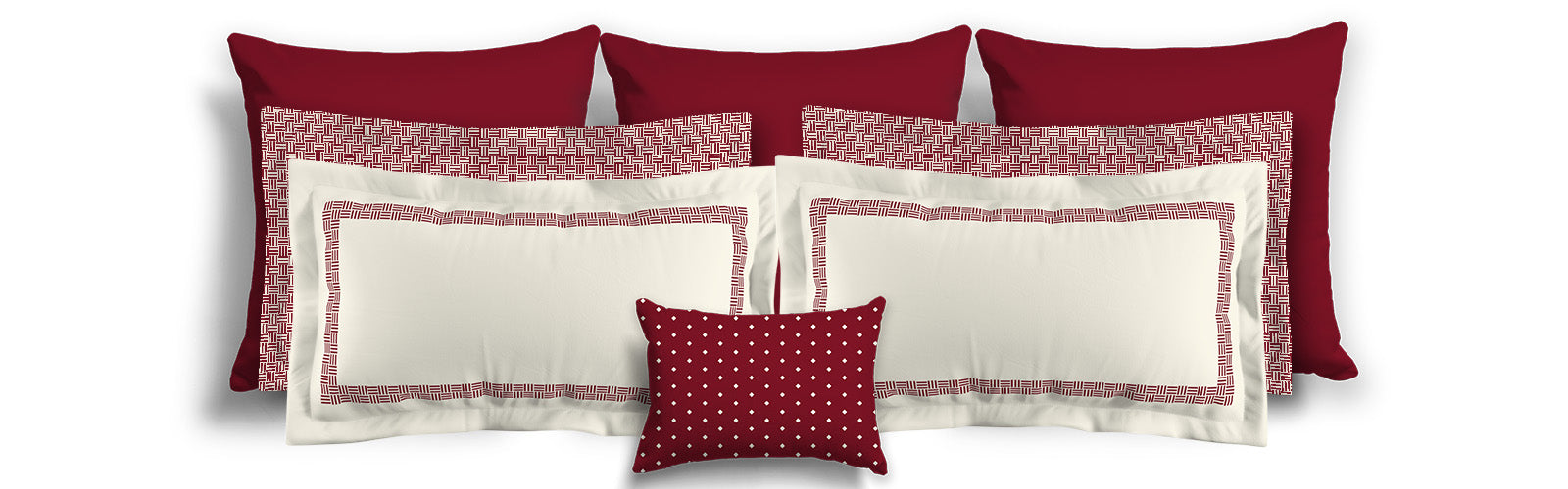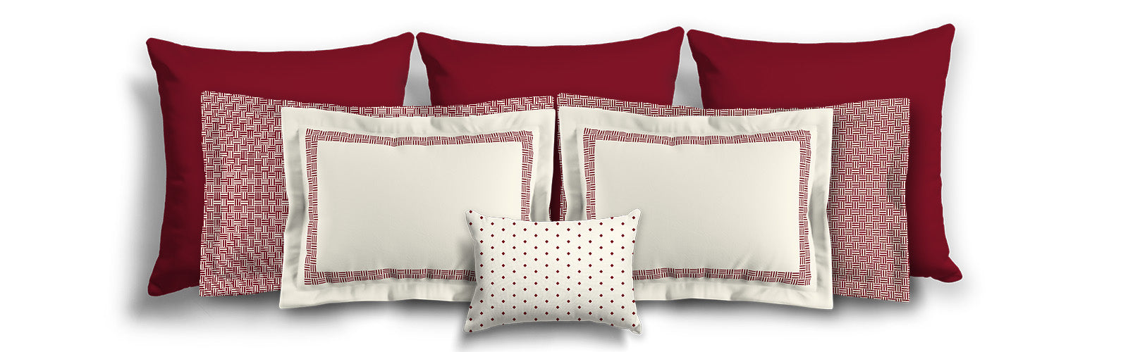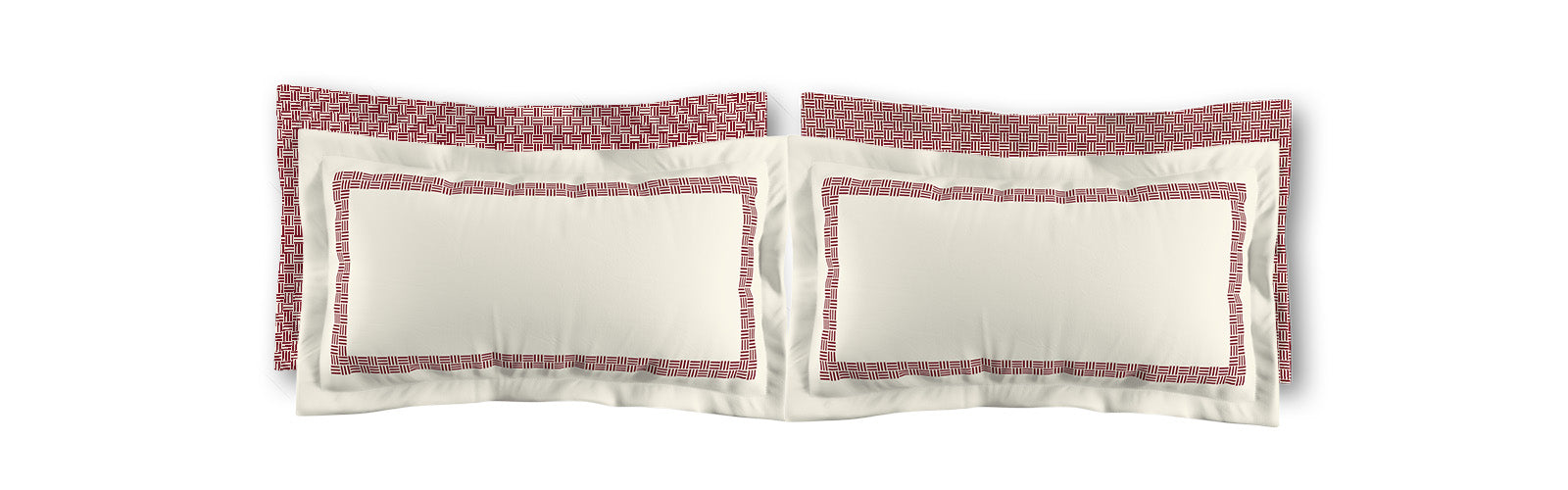 Pale Cream Microfiber Pillow Sham with Flange, Burgundy Red Double Weave Motif Print, White Reverse Side | MFSF-1283-144