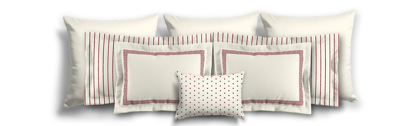 Pale Cream Microfiber Sham with Flange, Burgundy Red Bars on Front, White Reverse Side | MFSF-1283-051
