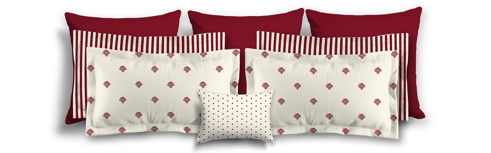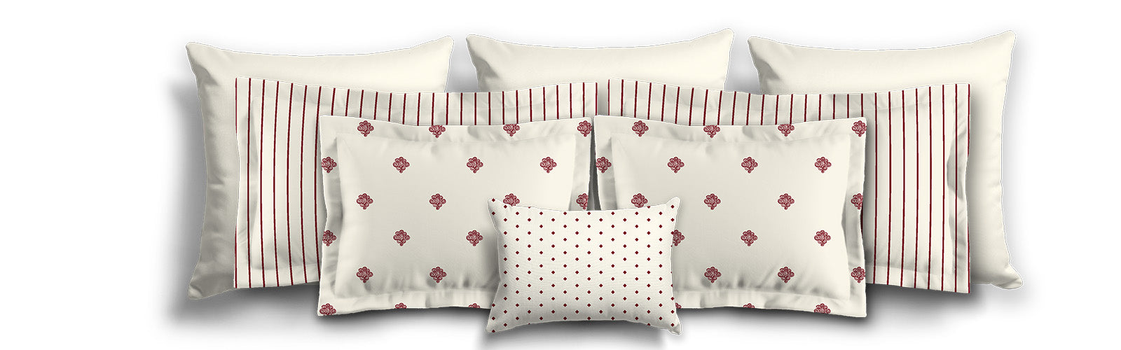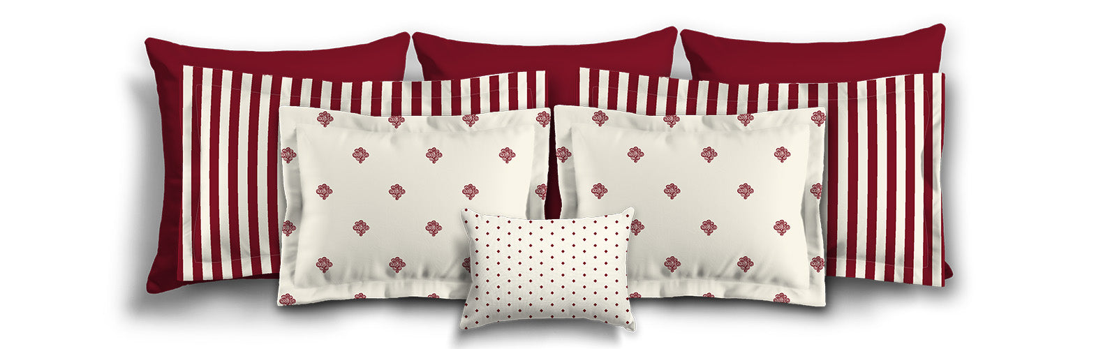Pale Cream Microfiber Sham with Flange, Burgundy Red Bars on Front, White Reverse Side | MFSF-1283-051