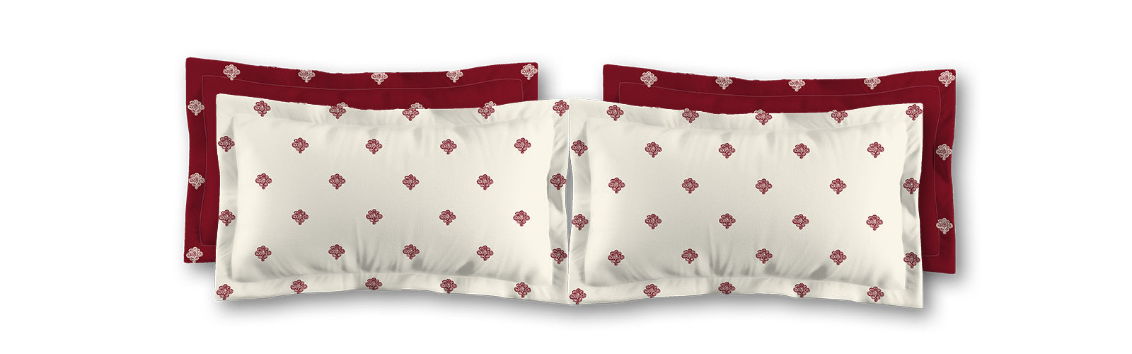 Pale Cream Microfiber Pillow Sham with Flange, Burgundy Red Hand-painted Swizzle Motif Print, White Reverse Side | MFSF-1283-171