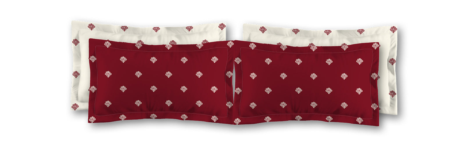 Burgundy Red Microfiber Pillow Sham with Flange, Pale Cream Hand-painted Swizzle Motif Print, White Reverse Side | MFSF-1283-172