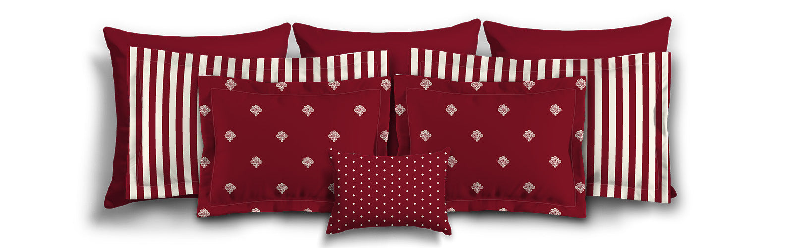 Burgundy Red Microfiber Sham with Flange, Pale Cream Stripes on Front, White Reverse Side | MFSF-1283-152