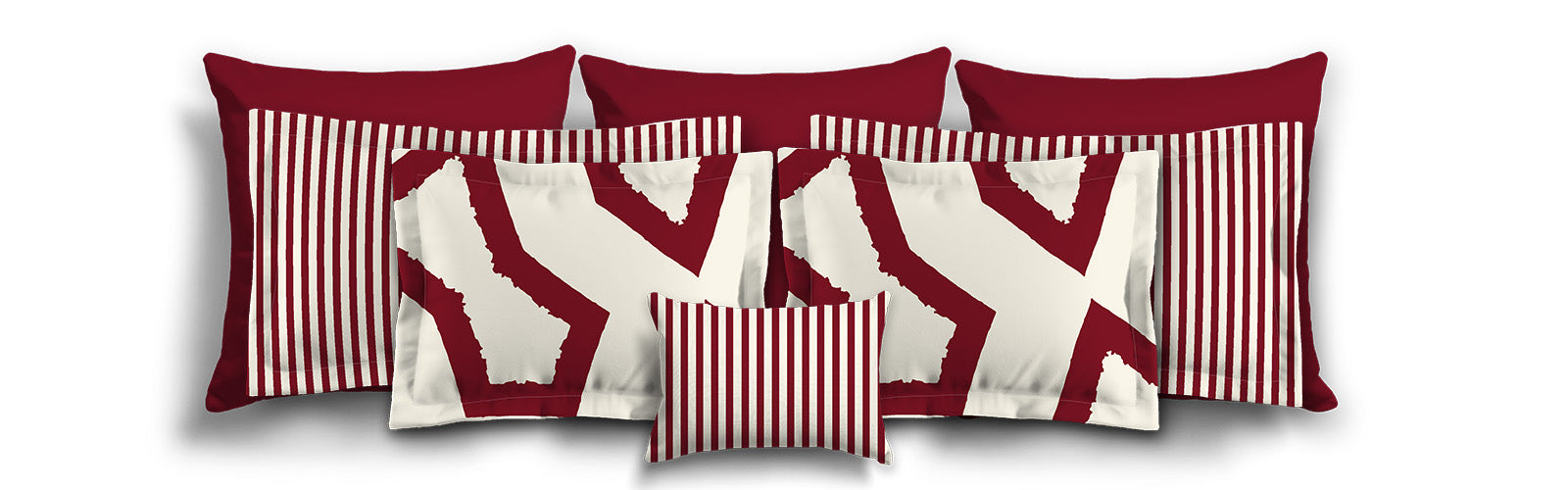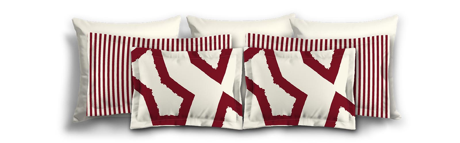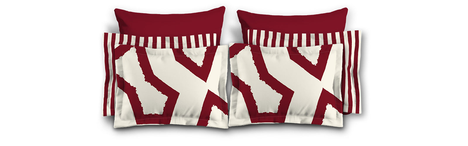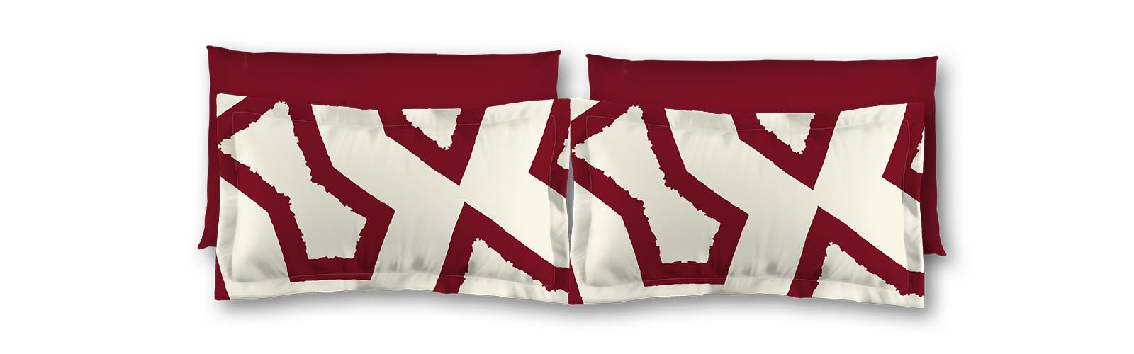Pale Cream Microfiber Sham with Flange, Bold Burgundy Red Graphic on Front, White Reverse Side | MFSF-1283-391