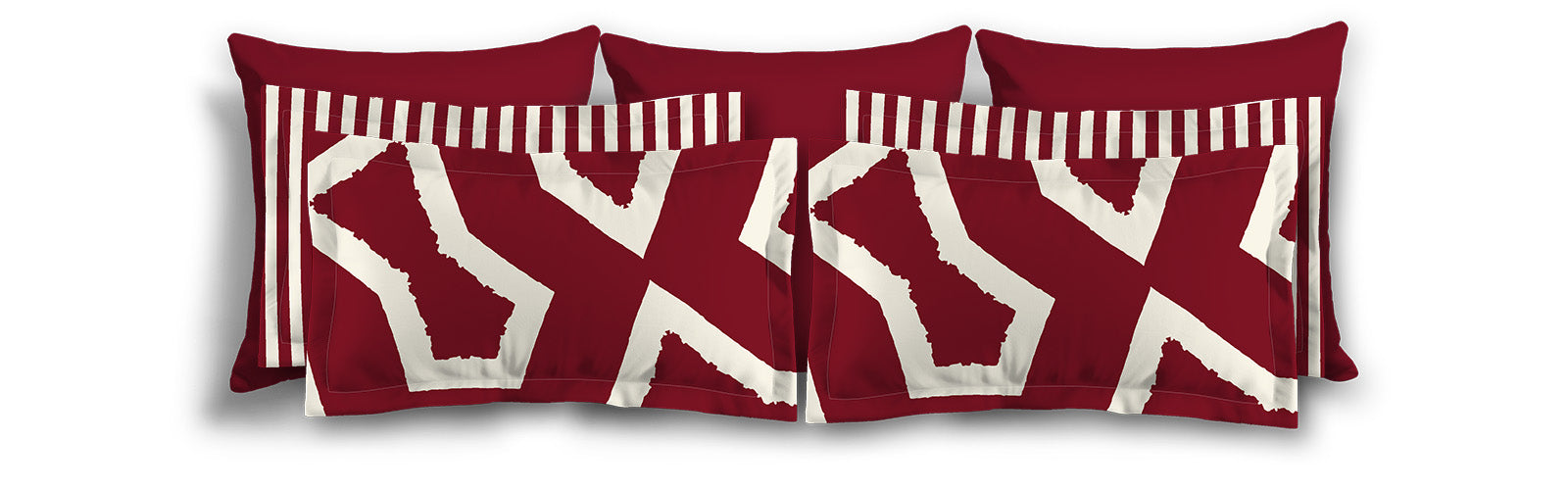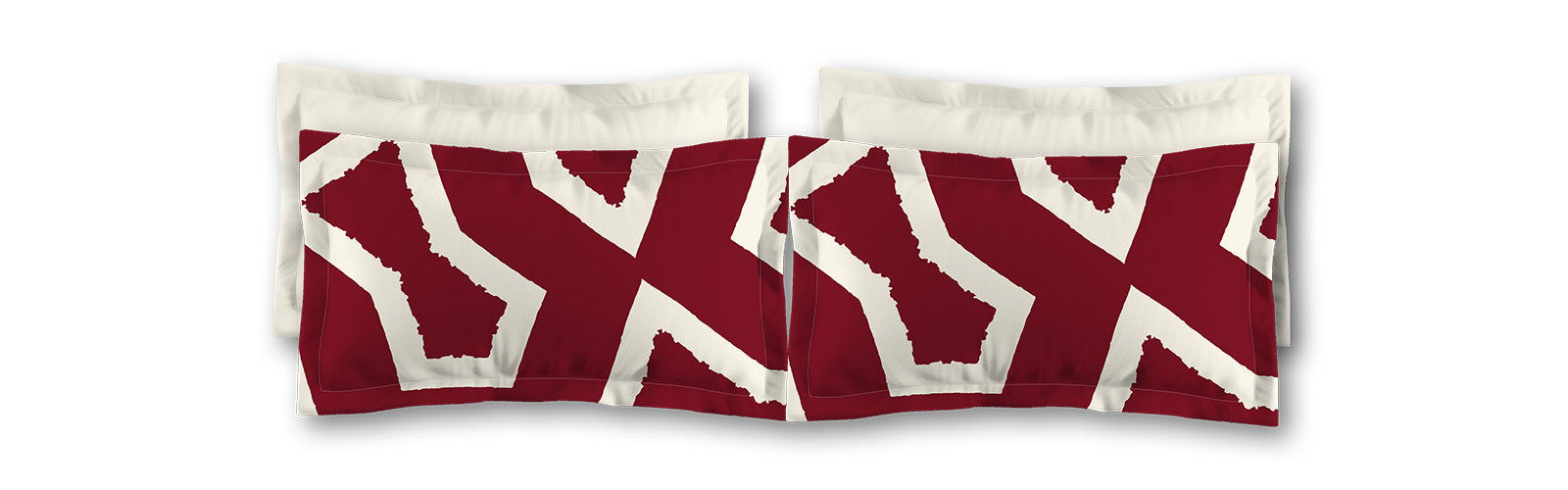 Burgundy Red Microfiber Pillow Sham with Flange, Bold Pale Cream Graphic on Front, White Reverse Side | MFSF-1283-392