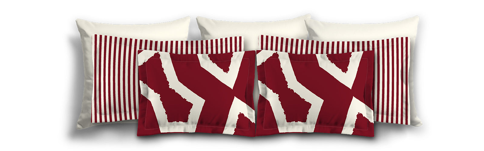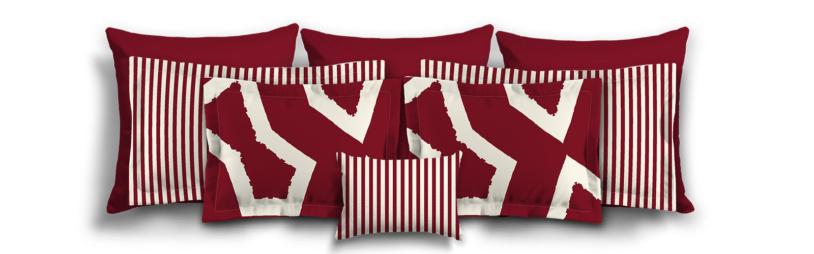 Pale Cream Spun Polyester Throw Pillow with Burgundy Red Bars on Front, USCU-1283-051