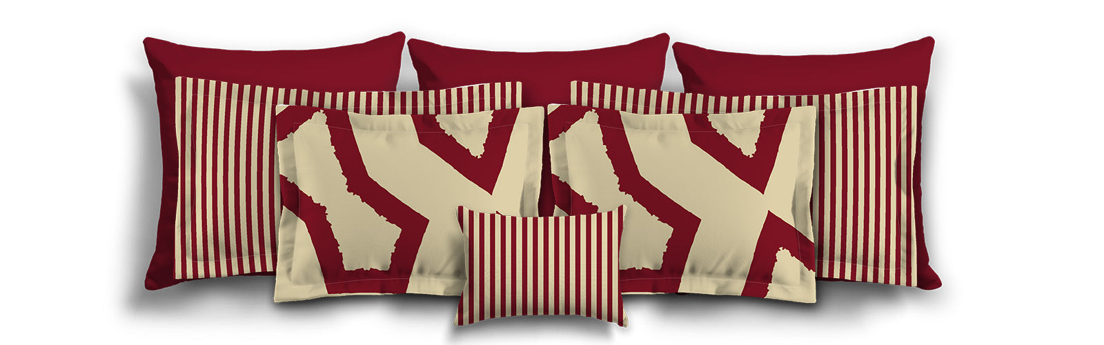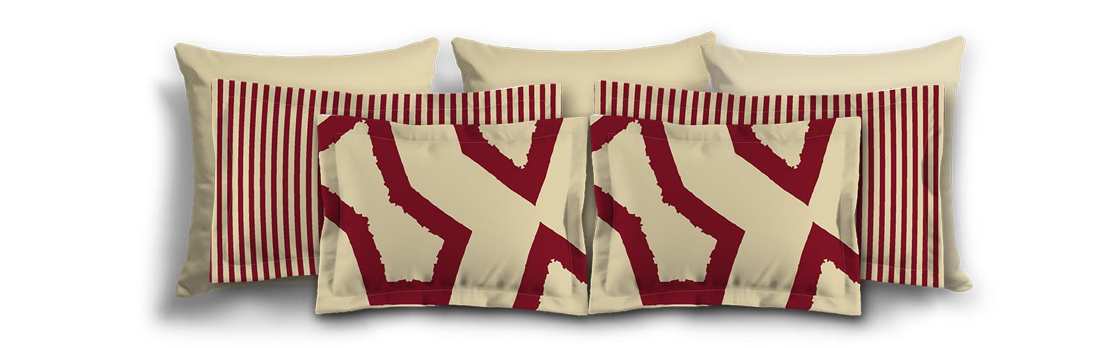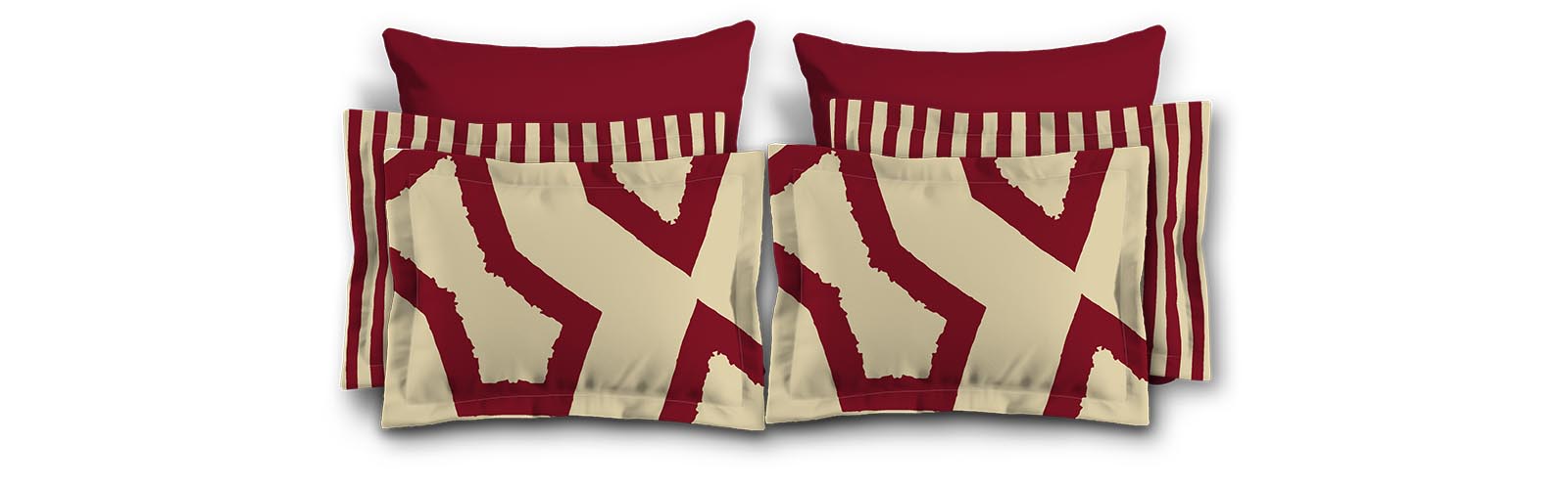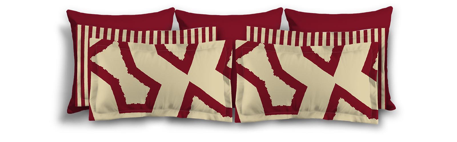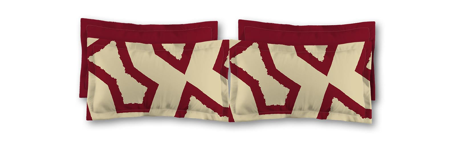 Tan Microfiber Sham with Flange, Bold Burgundy Red Graphic on Front, Tan Reverse Side | MFSF-1284-391