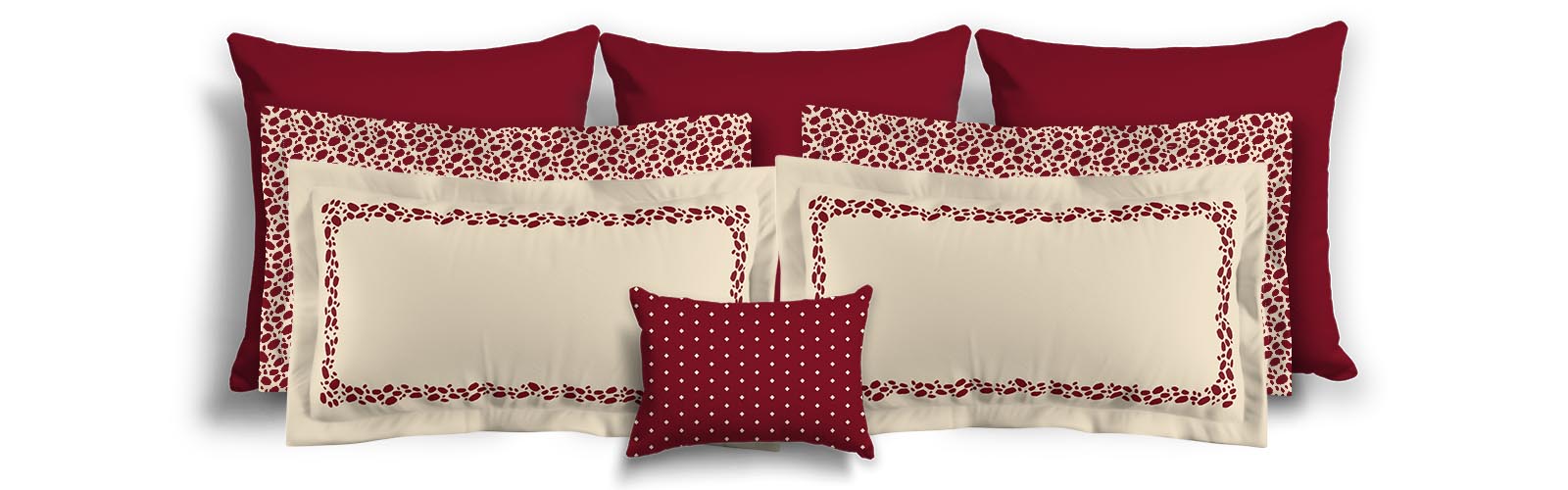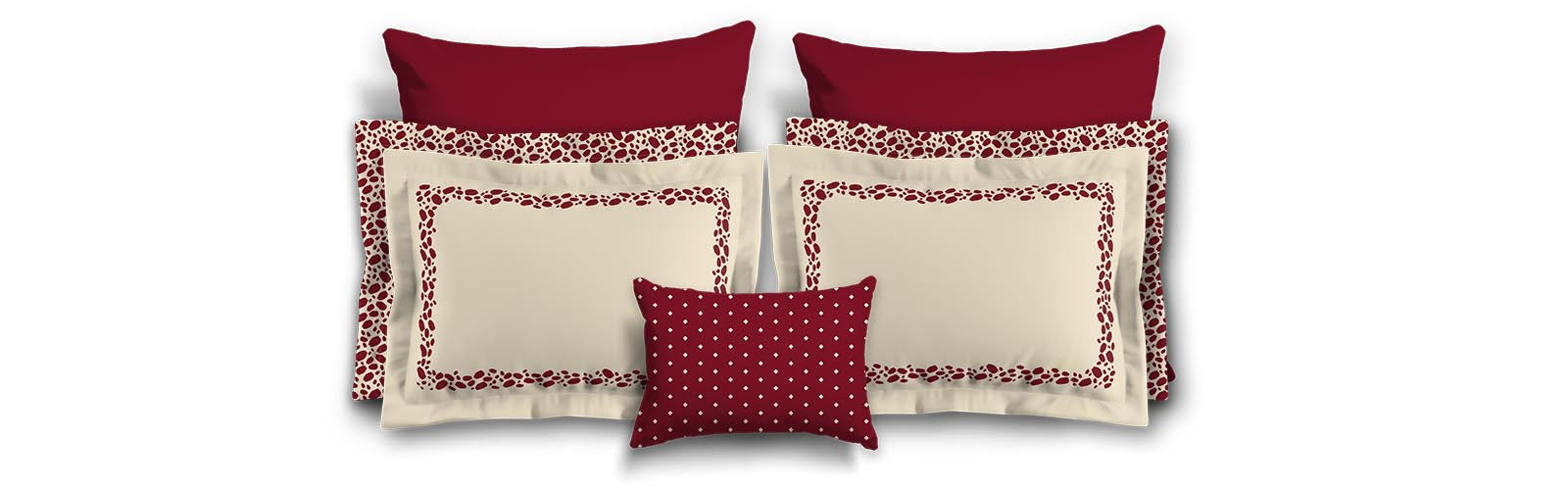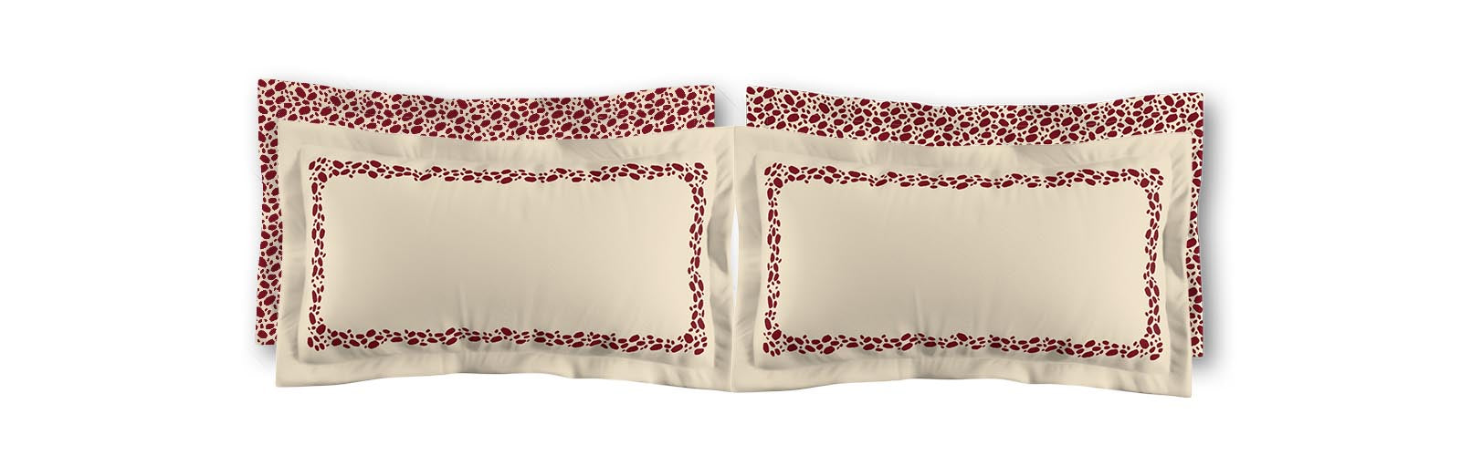 Beige Microfiber Pillow Sham with Flange, Burgundy Red Hand-painted Dab Motif Print, Classic Border, White Reverse Side | MFSF-1285-091