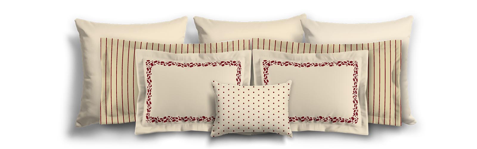 Beige Microfiber Sham with Flange, Thin Burgundy Red Bars on Front, White Reverse Side | MFSF-1285-241