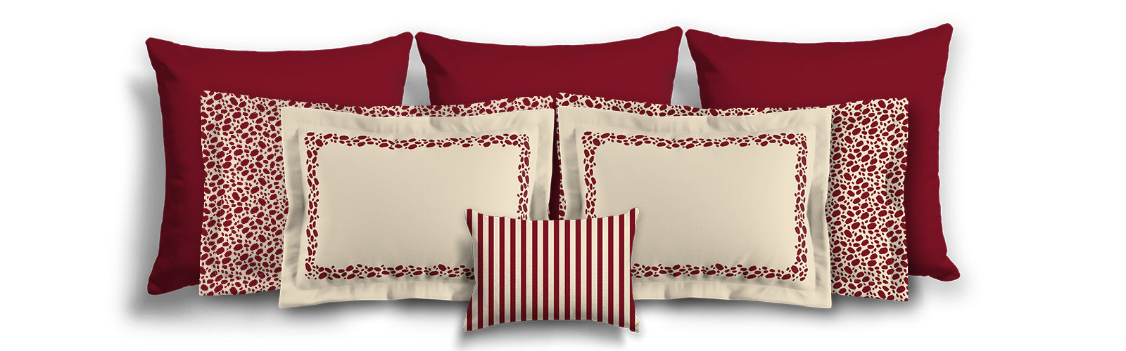 Burgundy Red Microfiber Sham with Flange, Beige Stripes on Front, White Reverse Side | MFSF-1285-152