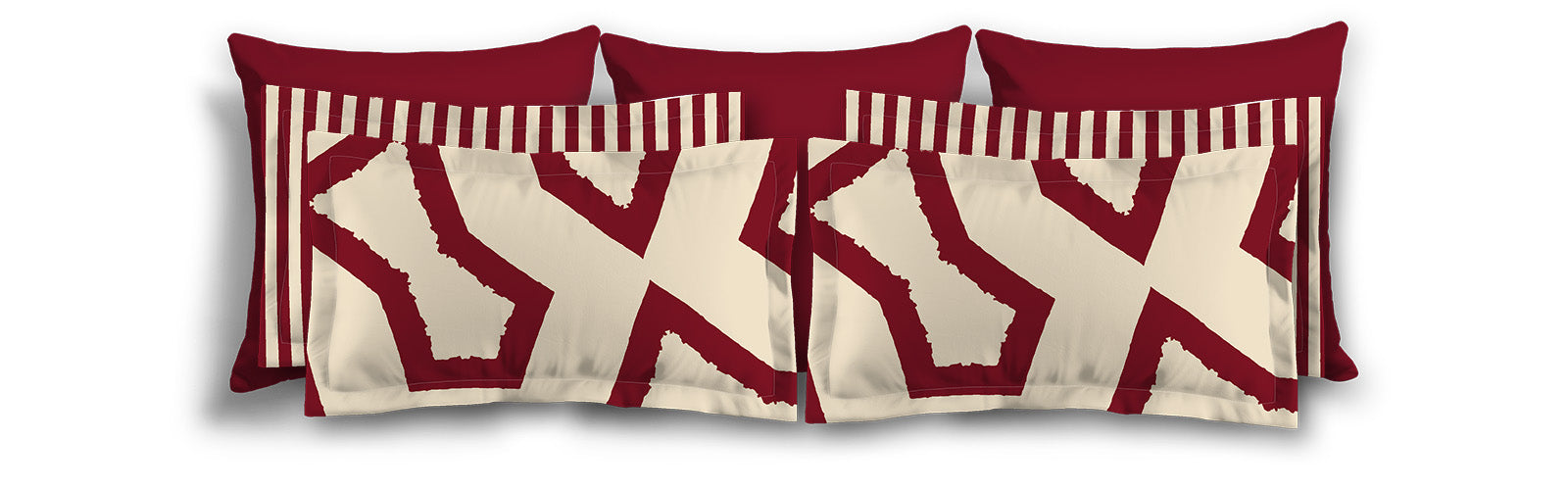 Beige Microfiber Sham with Flange, Bold Burgundy Red Graphic on Front, White Reverse Side | MFSF-1285-391