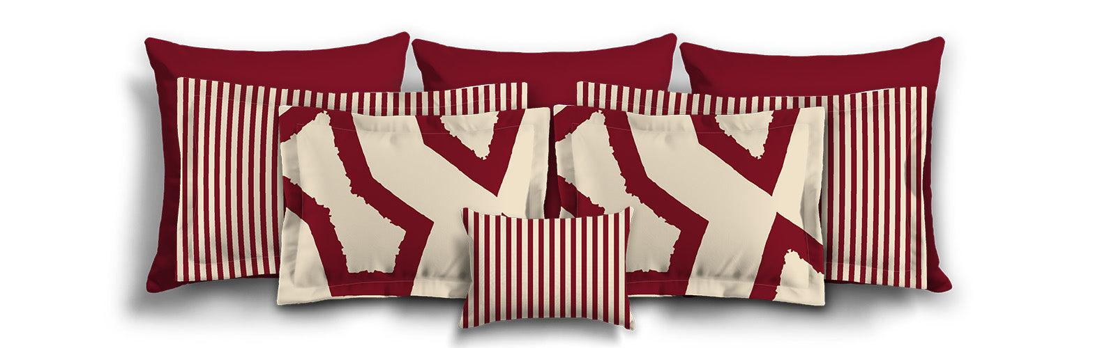 Beige Spun Polyester Throw Pillow with Burgundy Red Bars on Front, USCU-1285-051