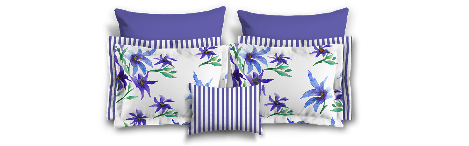 White Microfiber Sham with Flange, Purple Stripes on Front, White Reverse Side | MFSF-1300-151