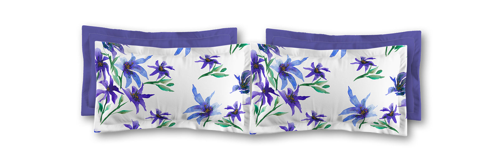 White Microfiber Pillow Sham with Flange, Large Purple Floral Print | MFSF-1304