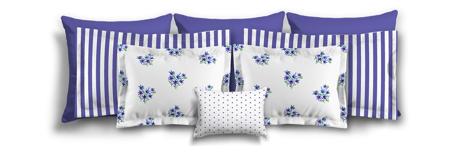 White Microfiber Sham with Flange, Thin Purple Bars on Front, White Reverse Side | MFSF-1300-241