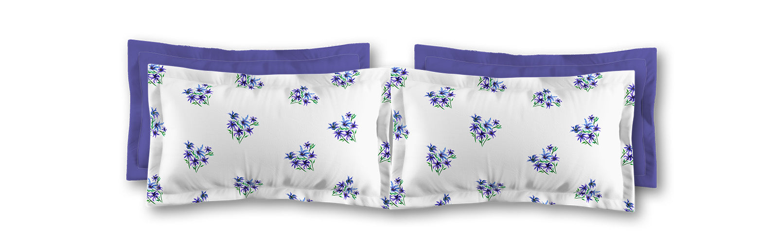 White Microfiber Pillow Sham with Flange, Medium Purple Floral Pattern | MFSF-1305