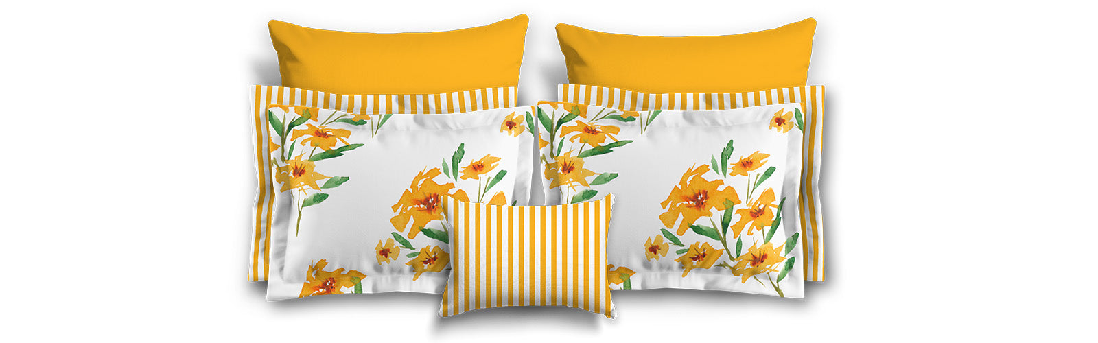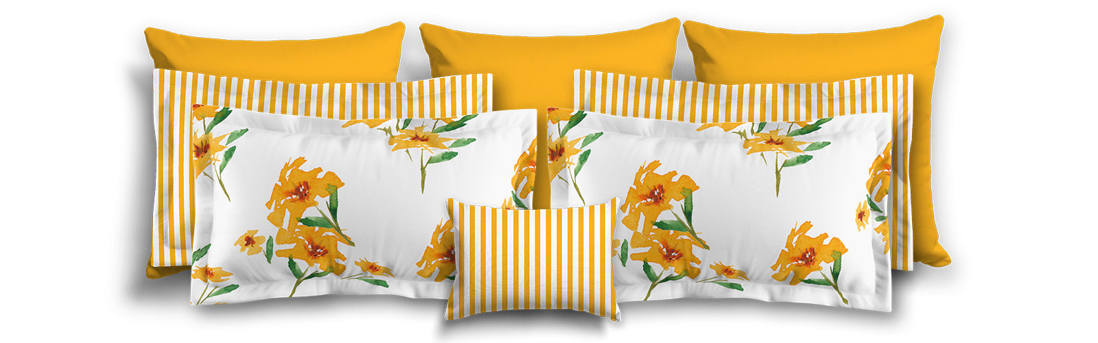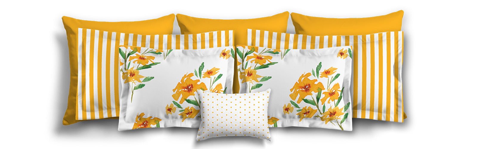 White Microfiber Sham with Flange, Yellow-Orange Stripes on Front, White Reverse Side | MFSF-1310-151