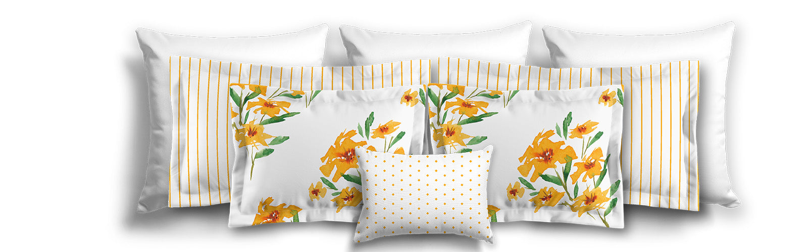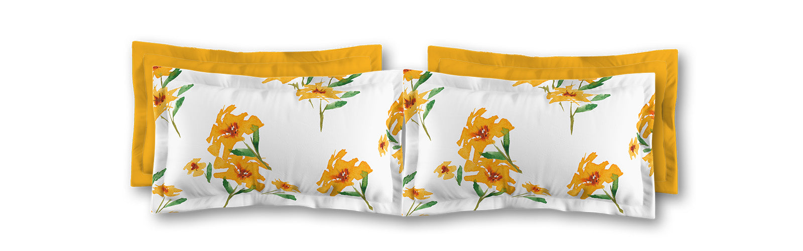 White Microfiber Pillow Sham with Flange, Large Yellow-Orange Floral Print | MFSF-1314