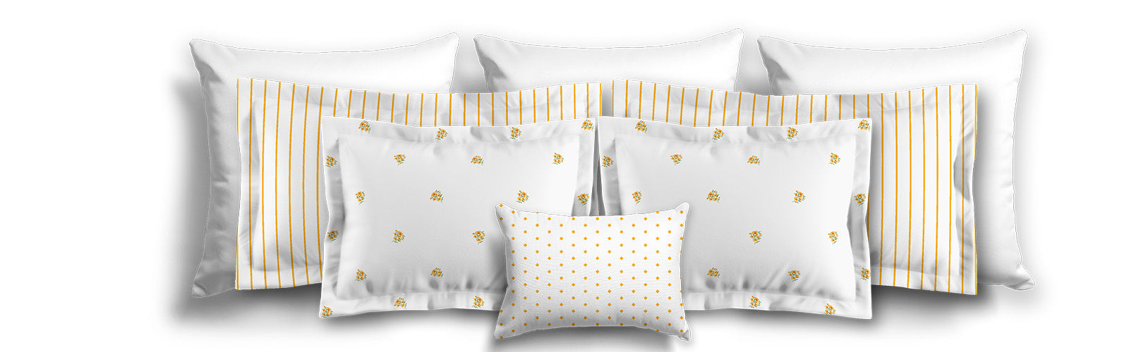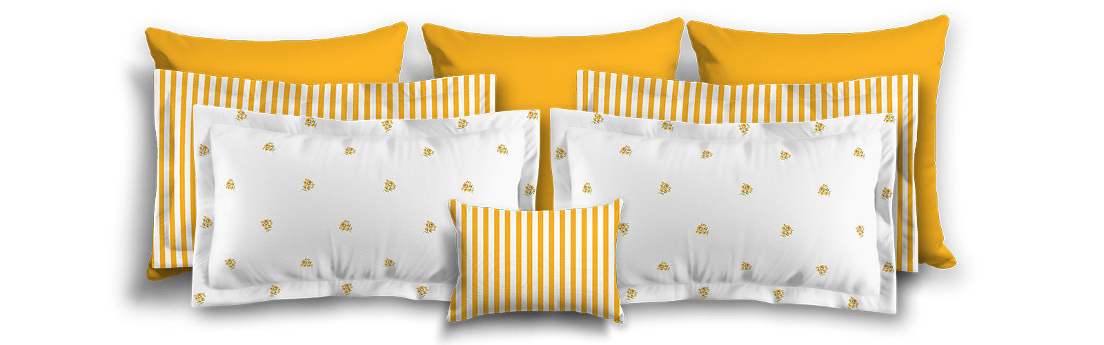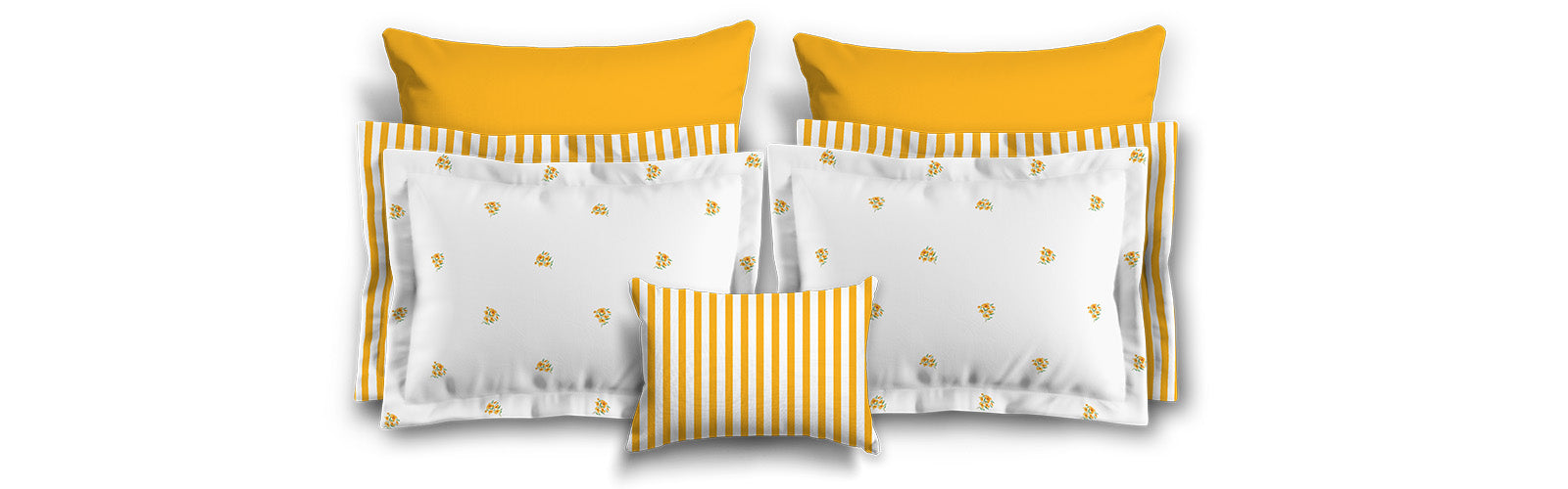 White Microfiber Sham with Flange, Yellow-Orange Stripes on Front, White Reverse Side | MFSF-1310-151