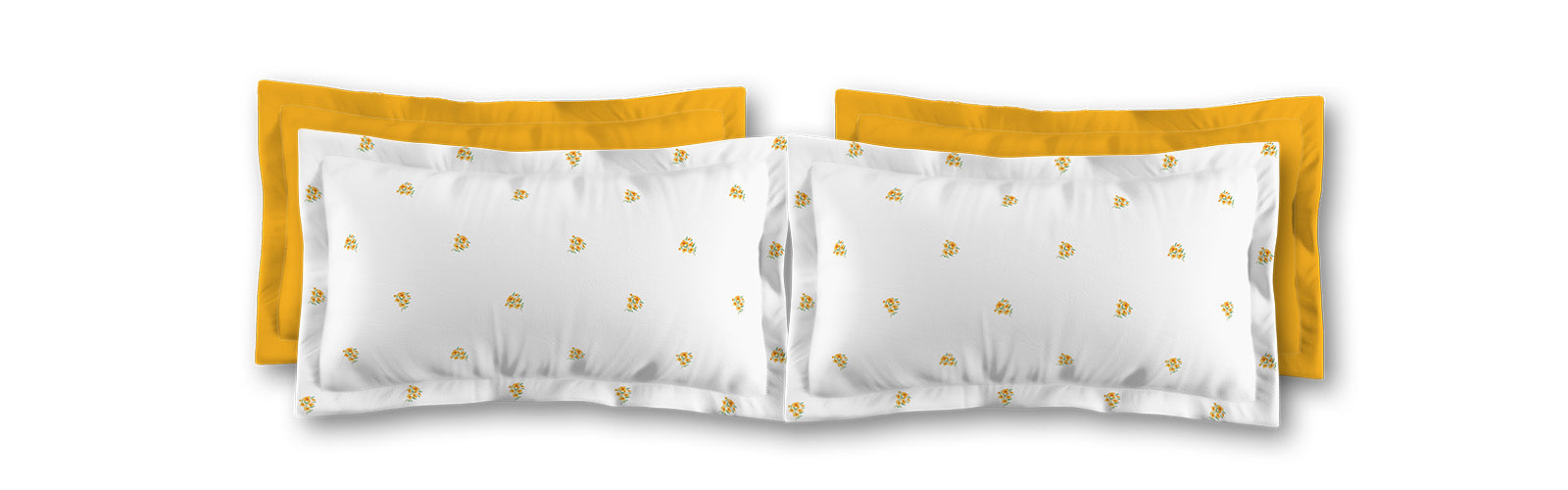 White Microfiber Pillow Sham with Flange, Small Yellow-Orange Floral Pattern | MFSF-1316