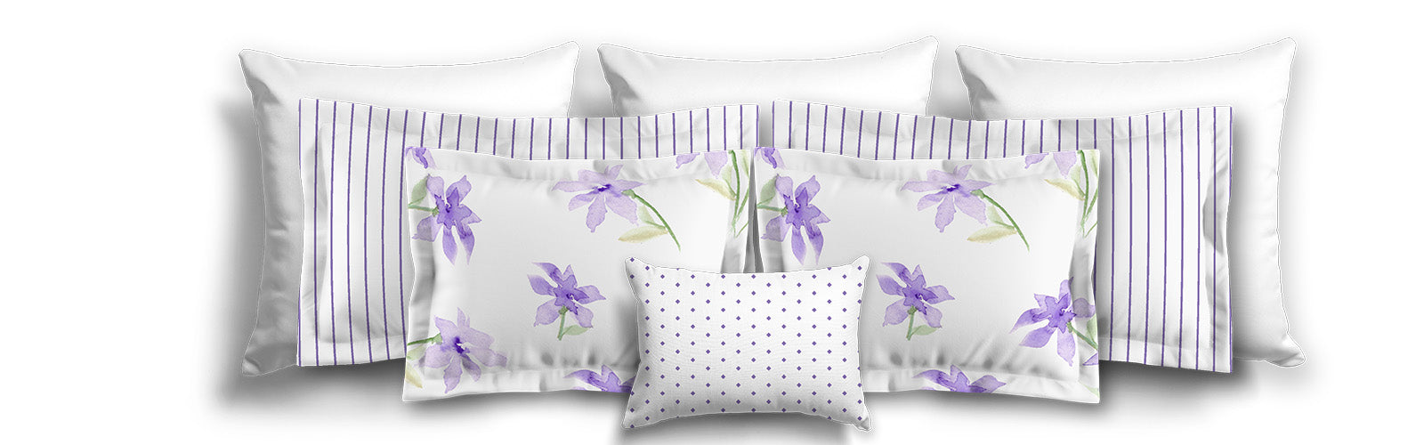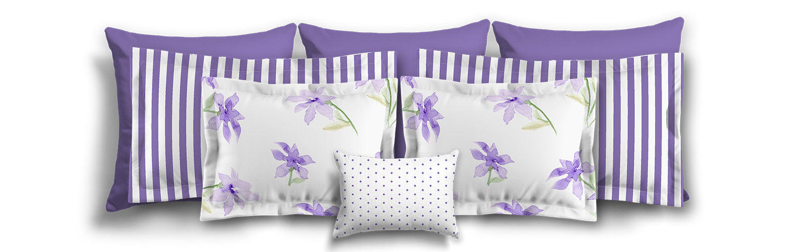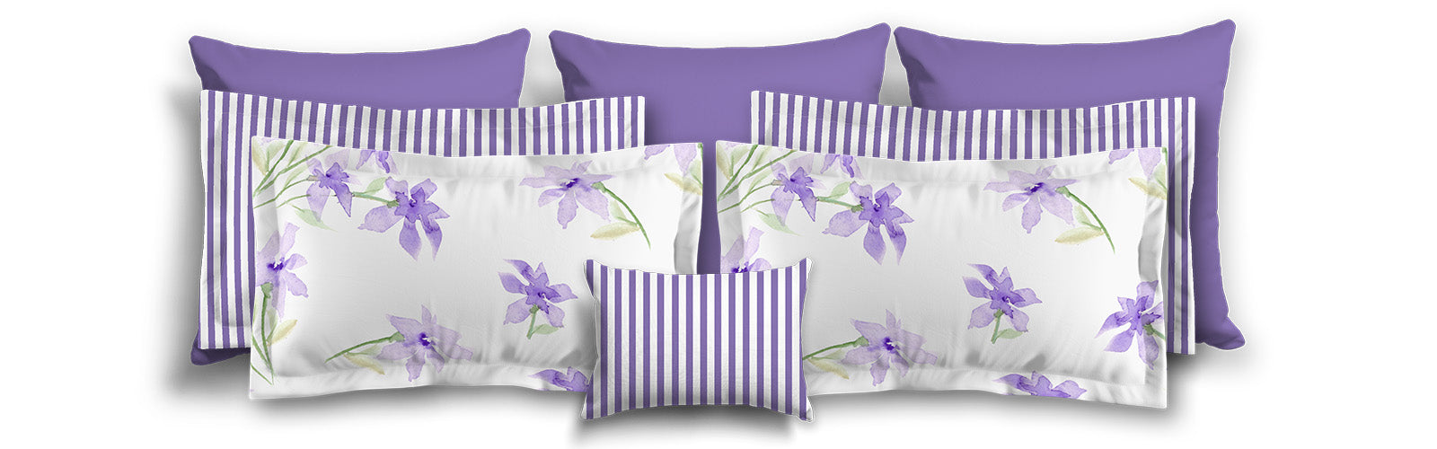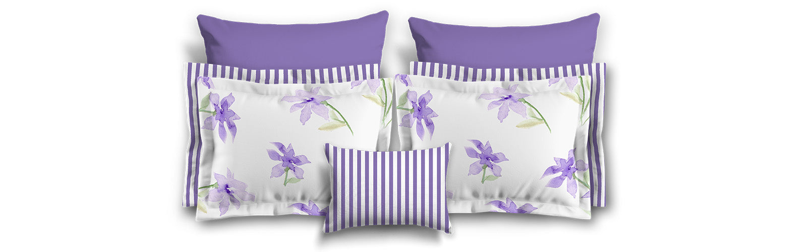 White Microfiber Sham with Flange, Purple Stripes on Front, White Reverse Side | MFSF-1320-151
