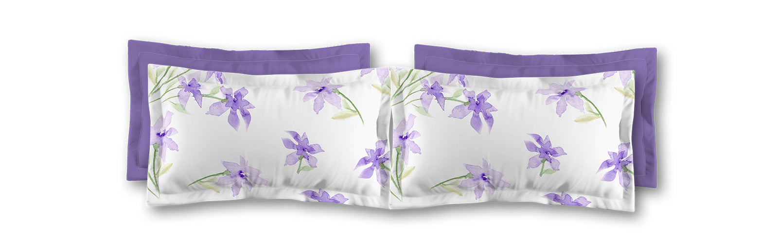 White Microfiber Pillow Sham with Flange, Large Purple Floral Print | MFSF-1324