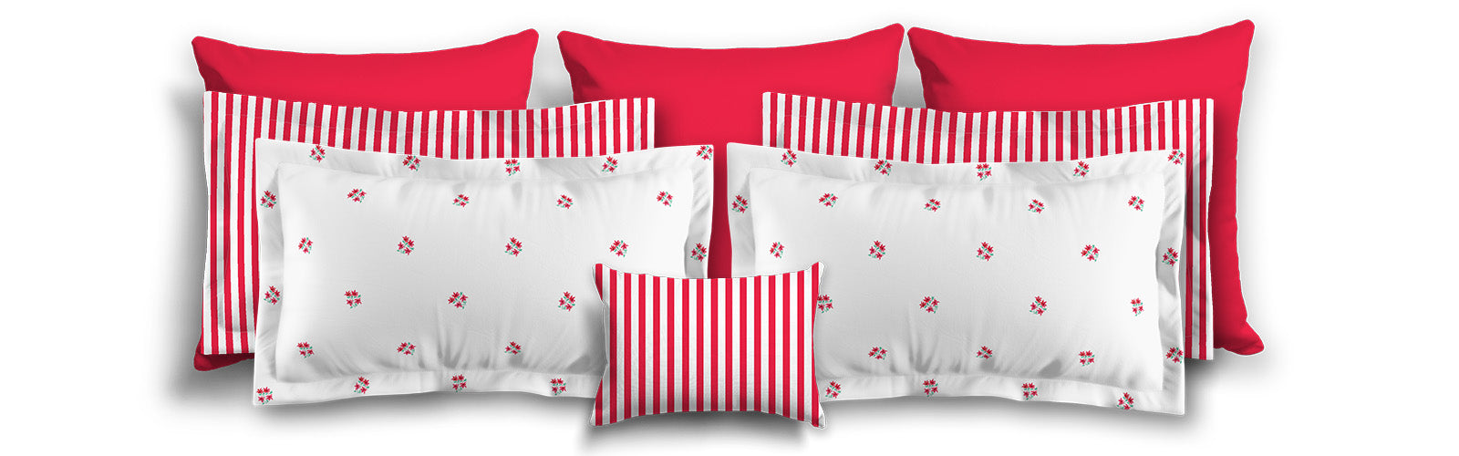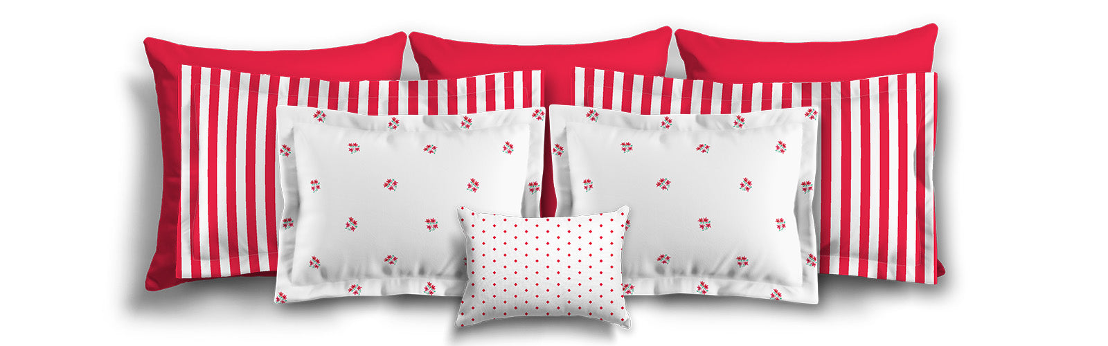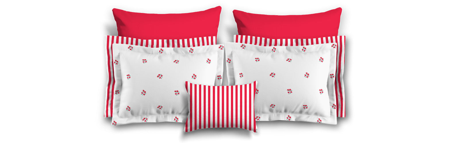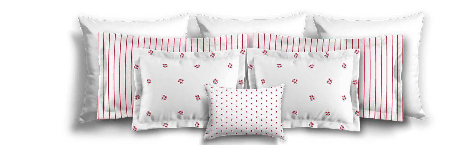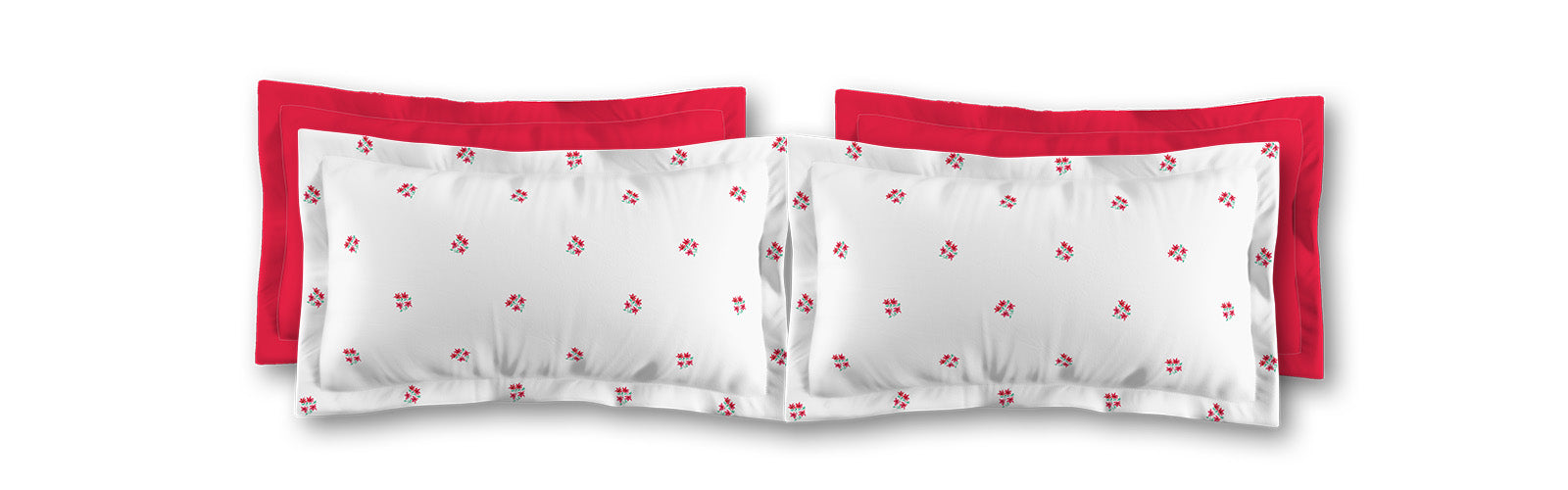 White Microfiber Pillow Sham with Flange, Small Red Floral Pattern | MFSF-1336