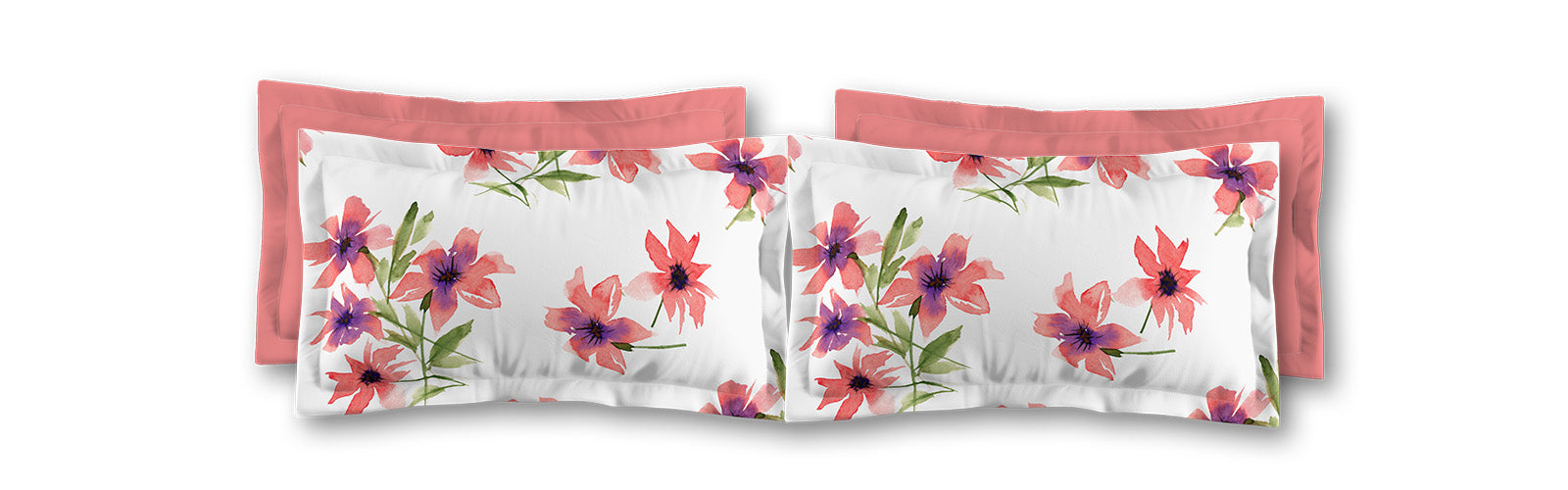 White Microfiber Pillow Sham with Flange, Large Pink Floral Print | MFSF-1344